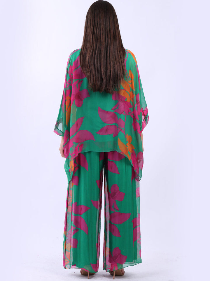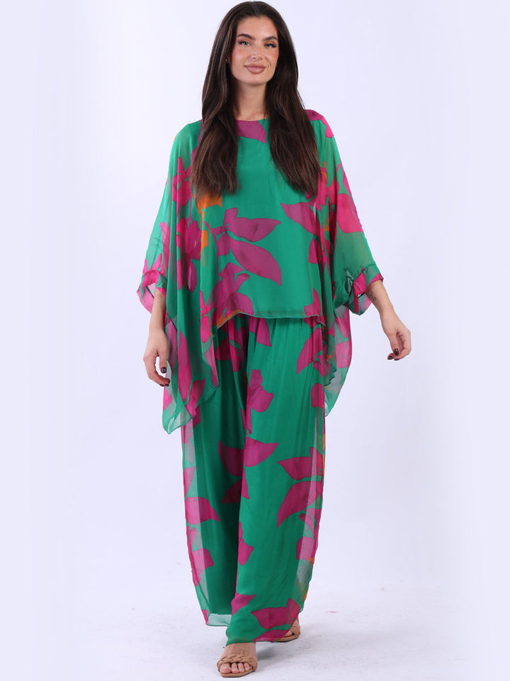 If you like making a statement, this oversized silk tunic with floral prints is your go-to. The batwing sleeves and relaxed fit make it perfect for casual fall days, while the double layering adds that extra warmth you need. It’s stylish, glamorous, and effortlessly cool. Made in Italy, it’s designed for women who love to mix elegance with a laid-back, casual style.