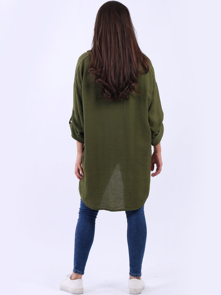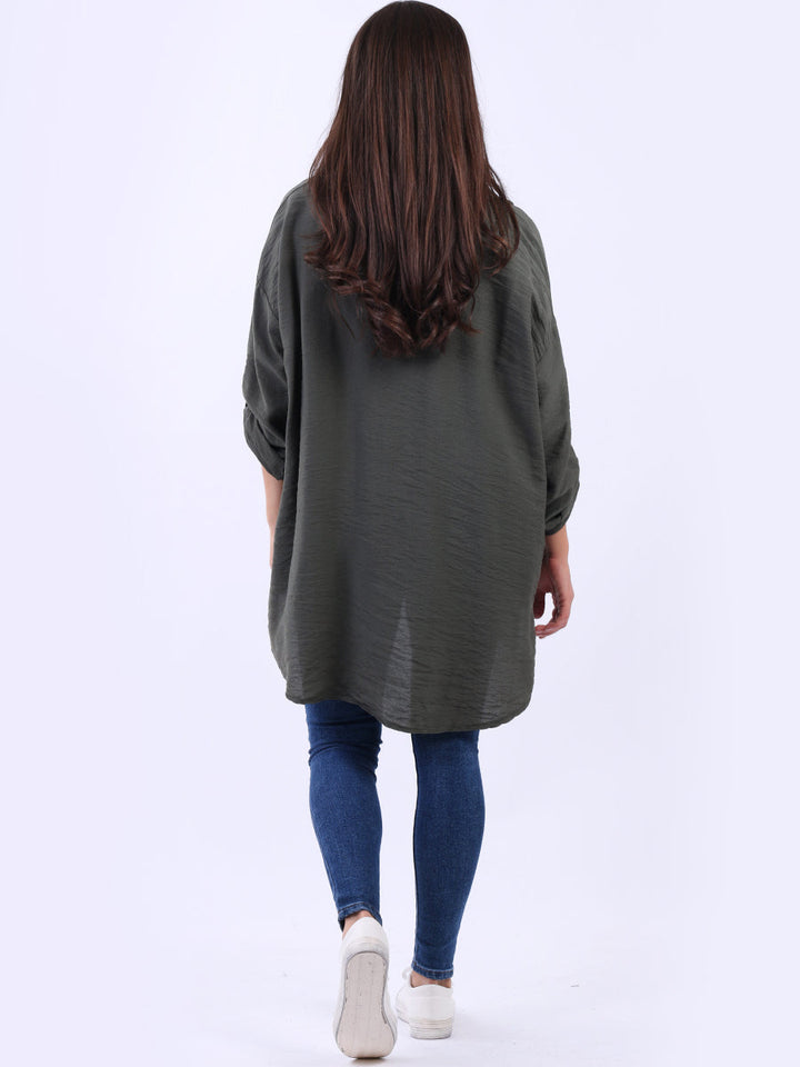 This Italian baggy shirt adorned with beautiful floral print. Featuring loose, relaxed fit with front buttons and dipped hem it adds a dramatic yet sleek touch to any outfit. Lovely ladies! Style it with wide-leg tailored trousers for a breathtaking look.