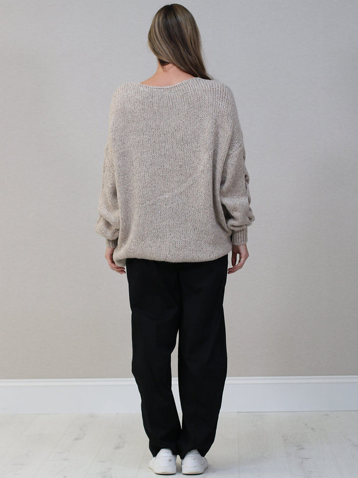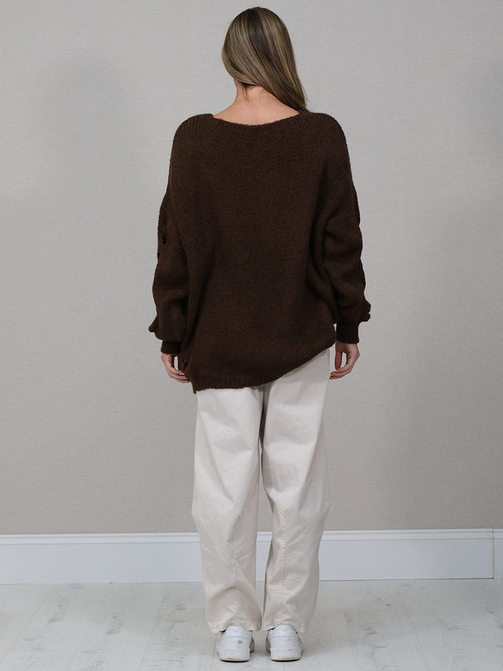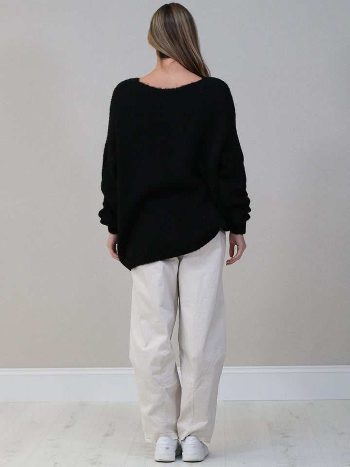 Indulge in this classic plain jumper by Purplewholesale – a comforting, go-anywhere, solid jumper to serve as the pop of colour your chilly-weathered collection needs. Made in Italy with excellent stitching and marked by slouchy, drop-shoulder shaping and a V-neck cut that celebrates everyone’s decolletage, with delicate soft braided sleeves for just a little something extra. Perfect for layering under the chill of a cooler day, women wearers can throw this jumper with jeans, a skirt, or smart trousers.