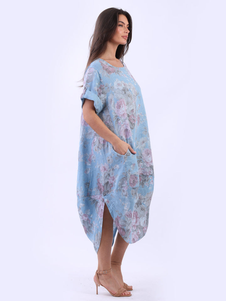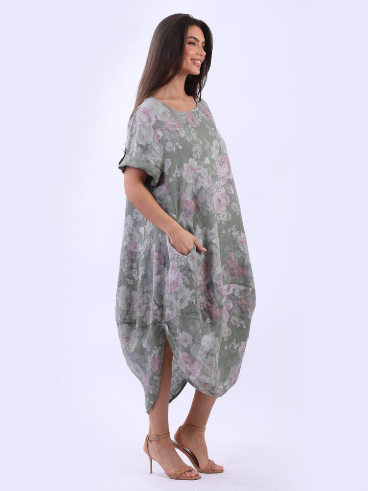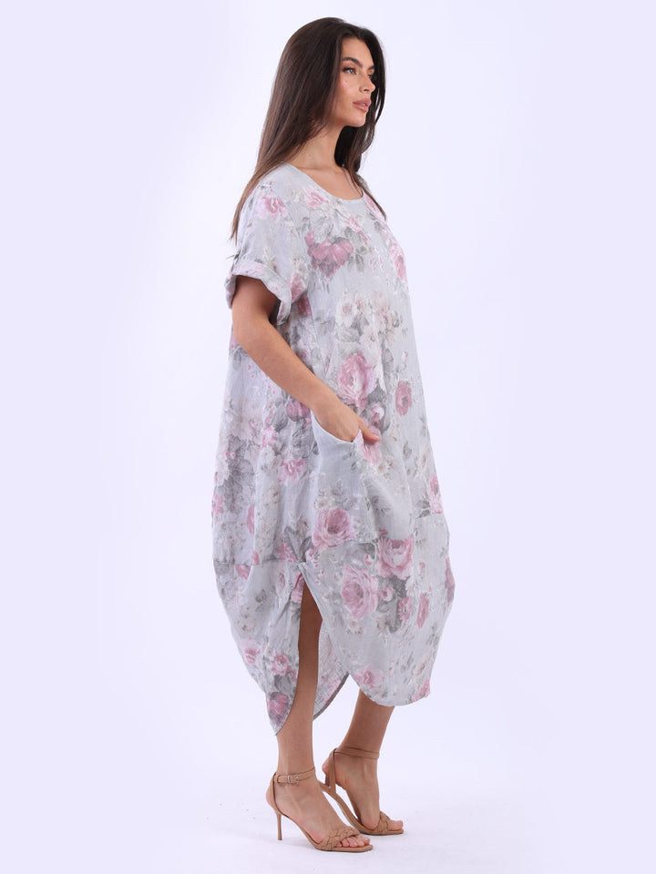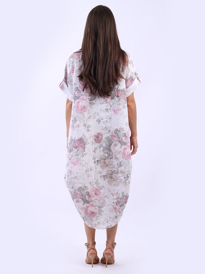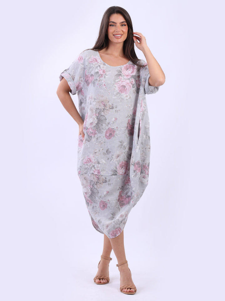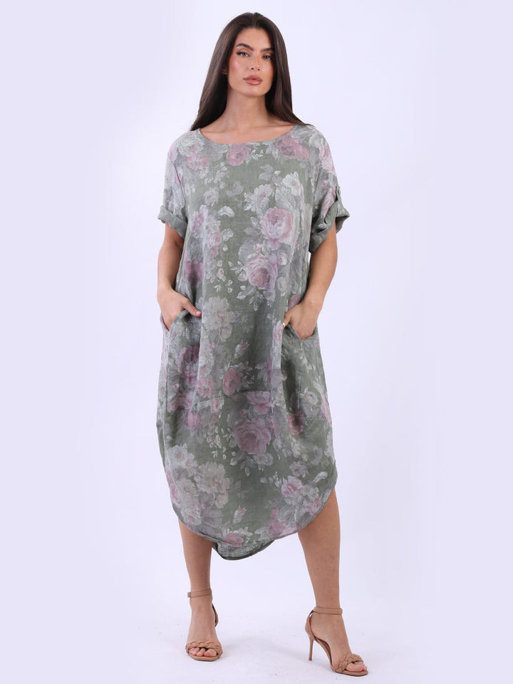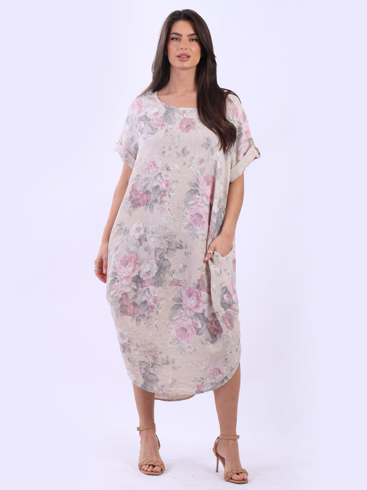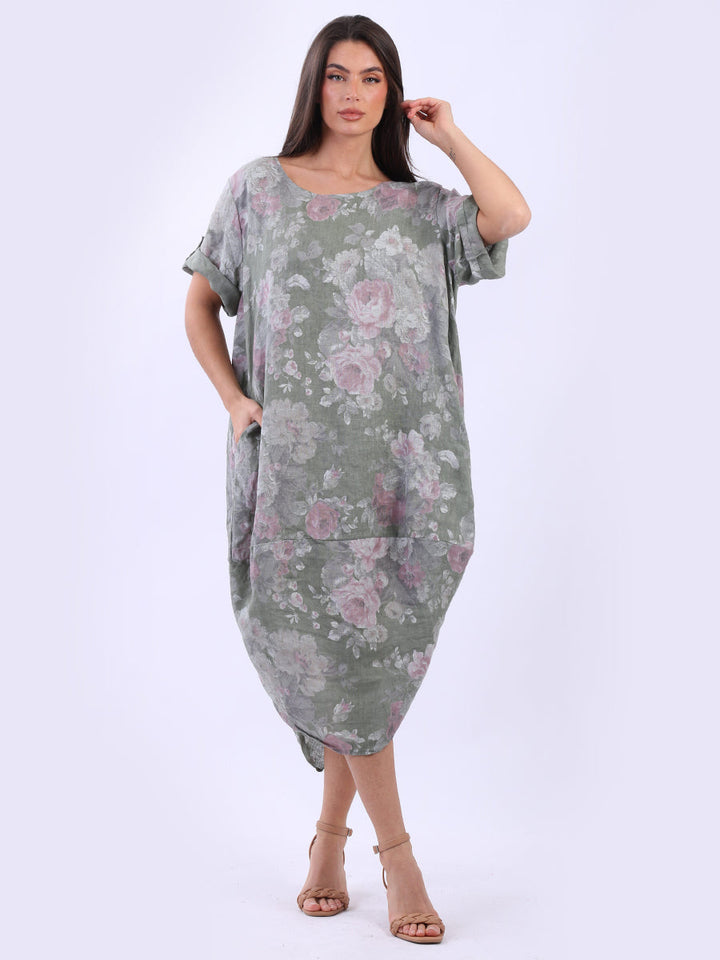 Elegant women wearers can capture the soft charm of autumn with this Purplewholesale’s floral-printed linen midi dress. The neutral shades and eye-soothing flowers bring a natural elegance to any look. Casual yet sophisticated, this oversized dress is ideal for laid-back weekends or cozy indoor gatherings. Made in Italy, it offers a lovely option for ladies who appreciate nature-inspired, feminine pieces.