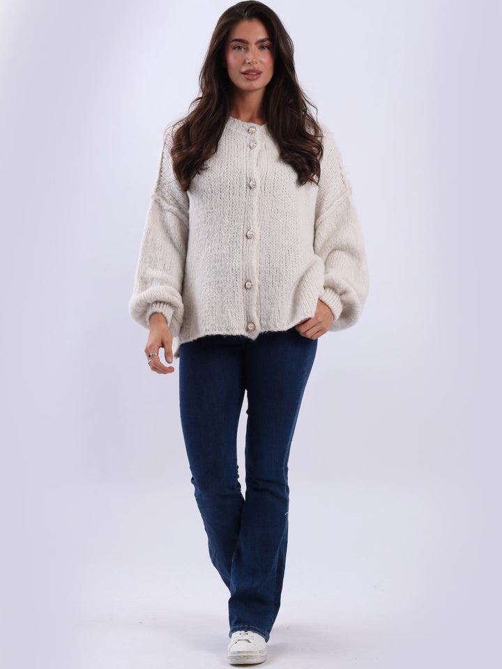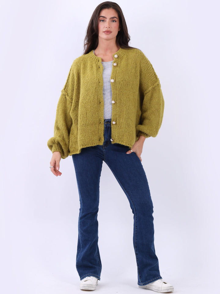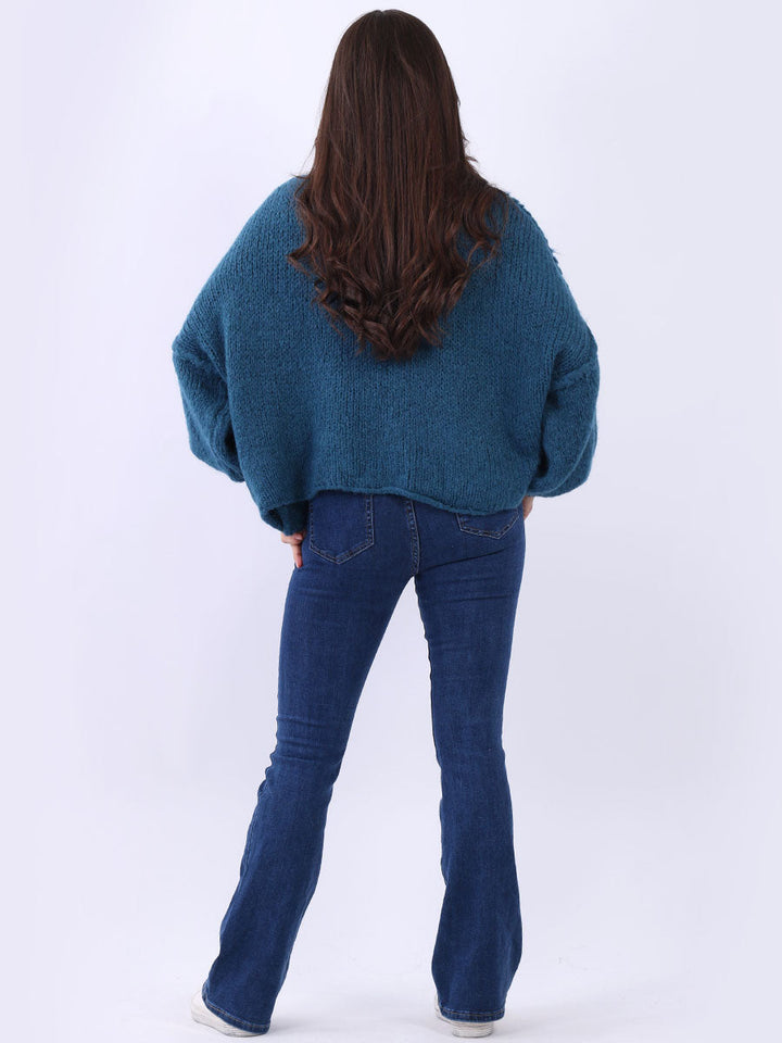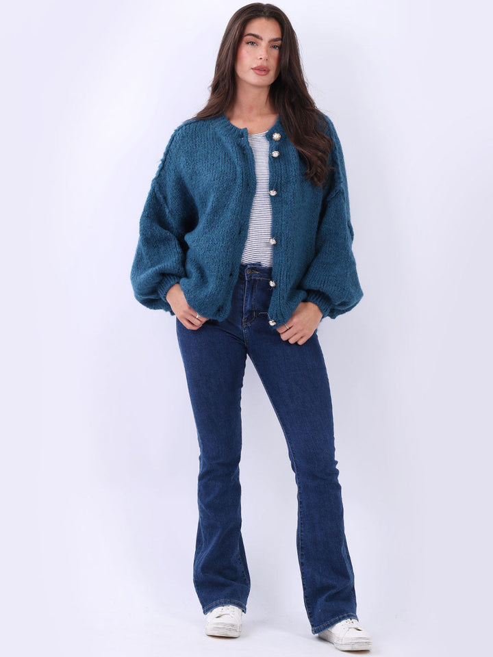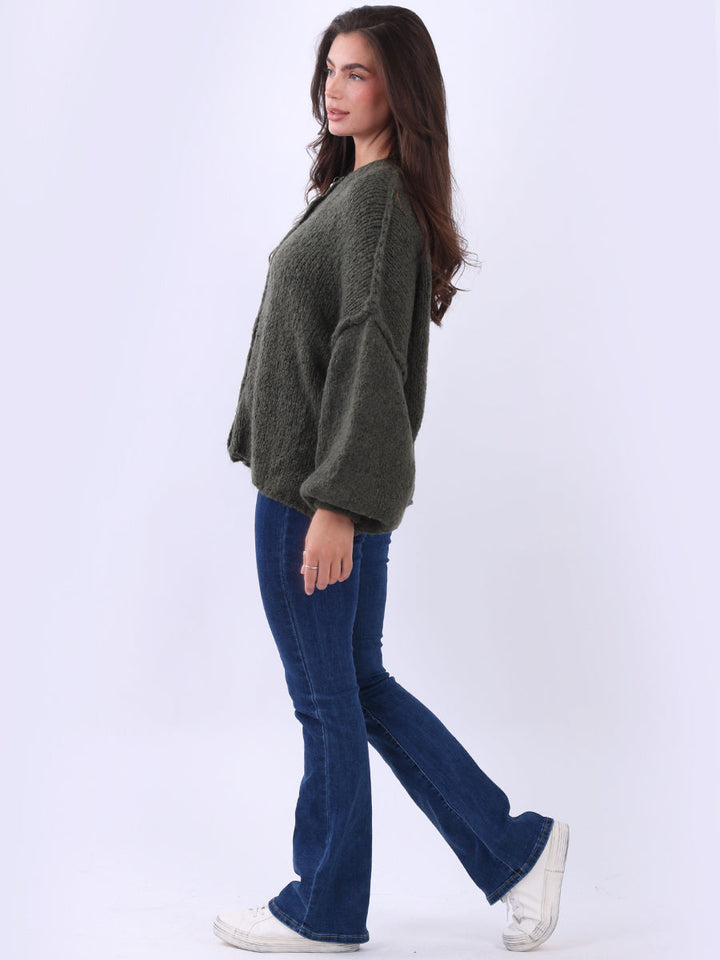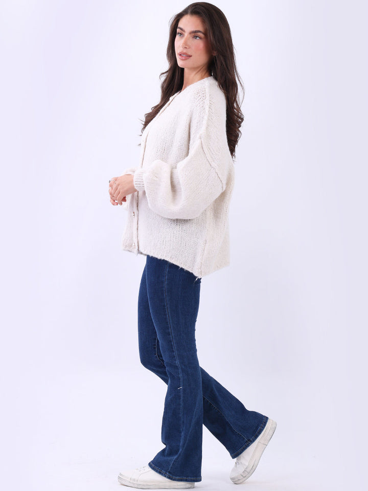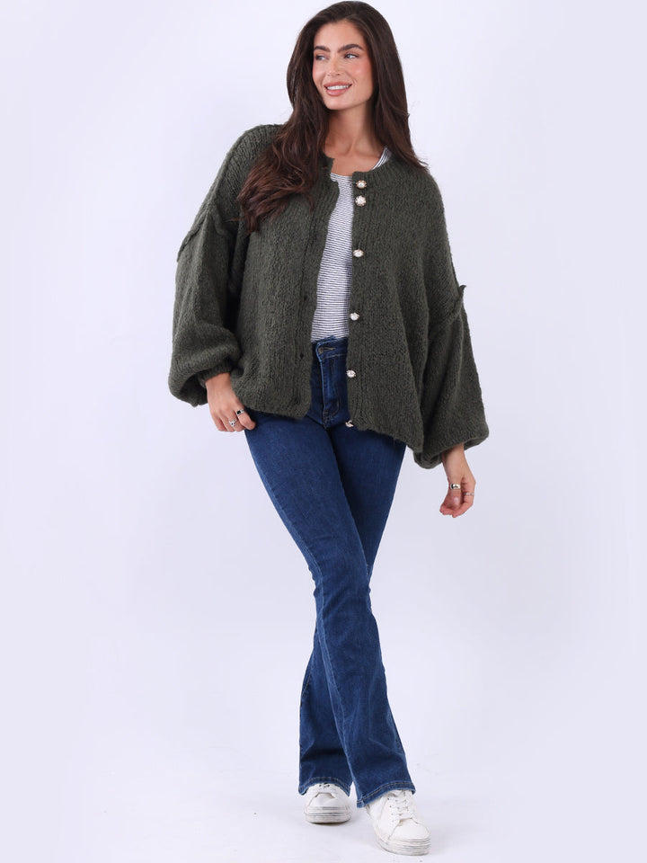 This elegant wool knitted crop cardigan offers warmth and style, with a cozy knit texture and playful front button fastening. It’s perfect with its drop shoulders and puffed sleeves for layering during the colder months, making it essential for any woman wearer’s winter wardrobe.