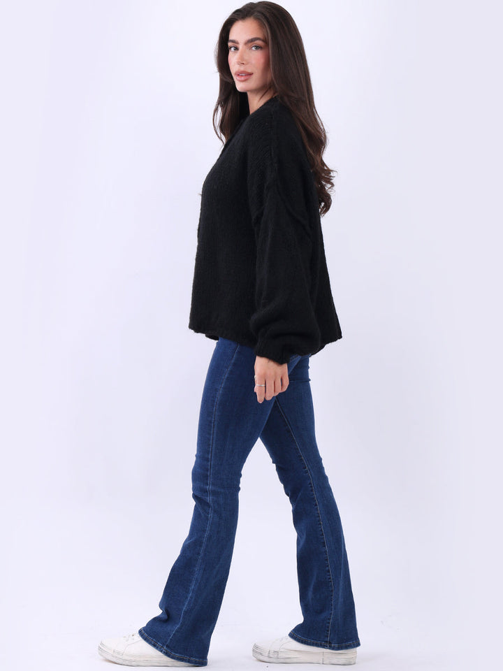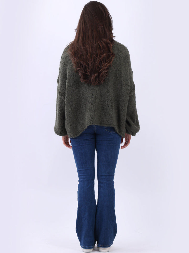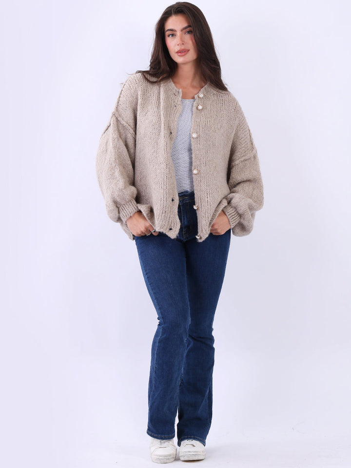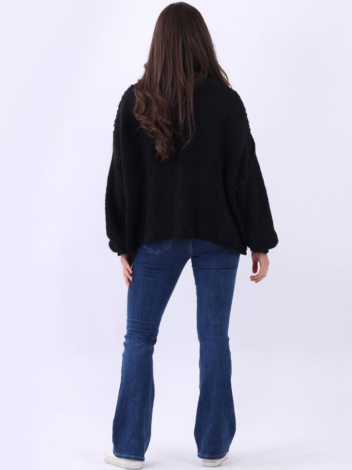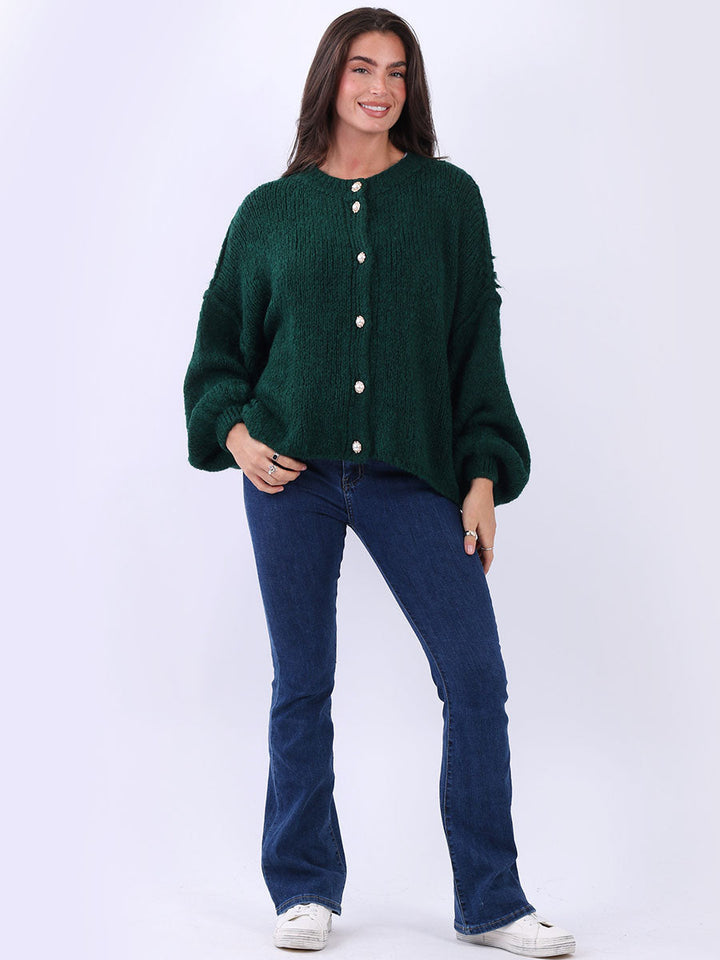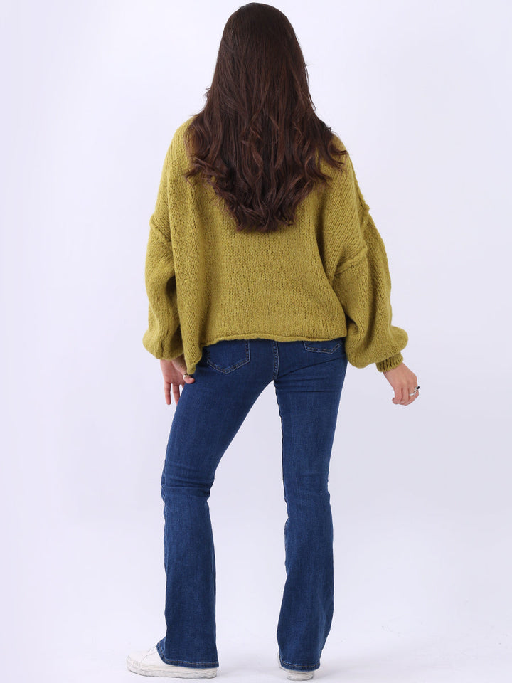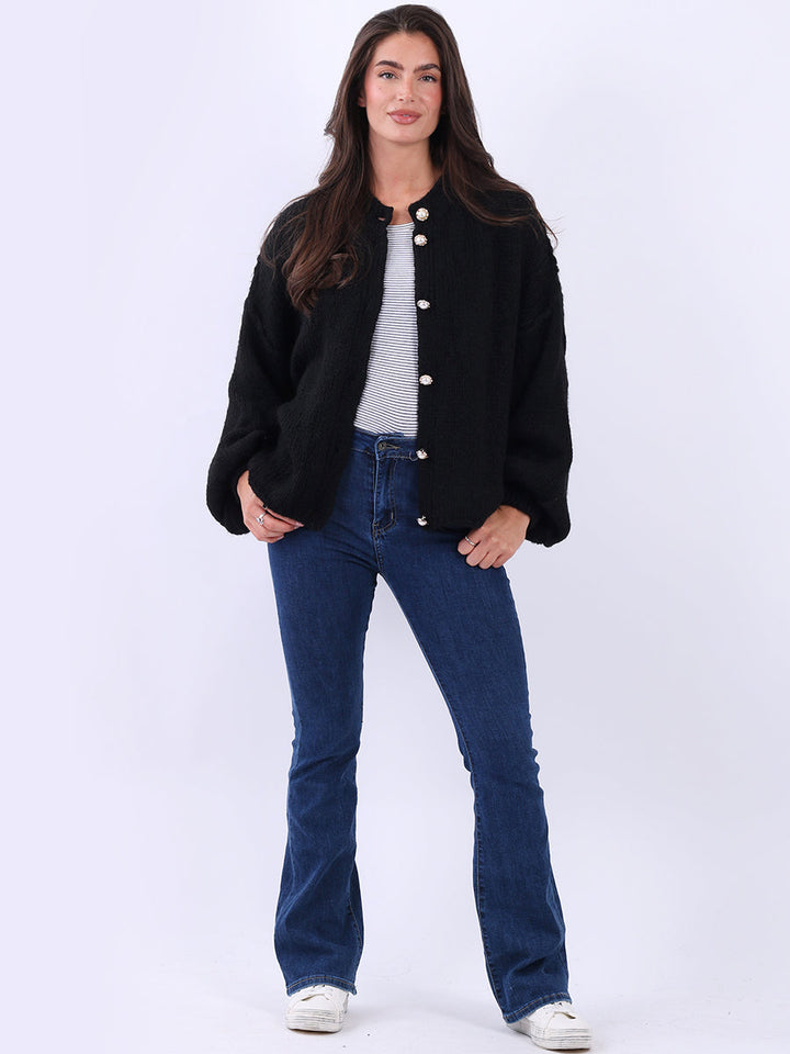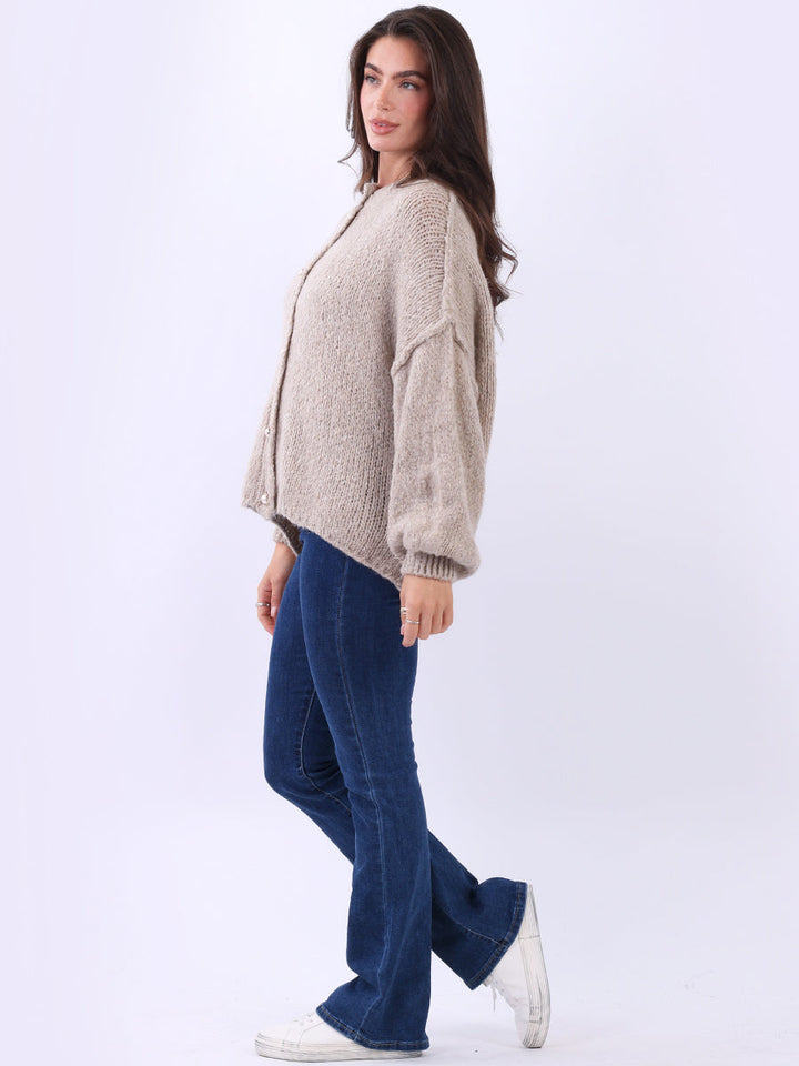 This elegant wool knitted crop cardigan offers warmth and style, with a cozy knit texture and playful front button fastening. It’s perfect with its drop shoulders and puffed sleeves for layering during the colder months, making it essential for any woman wearer’s winter wardrobe.