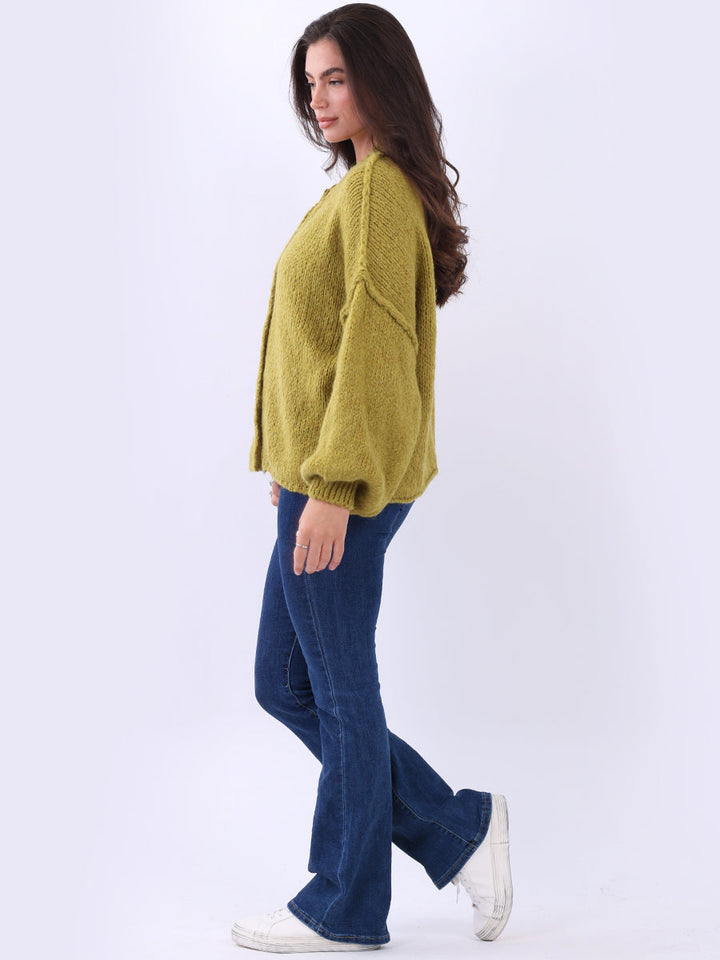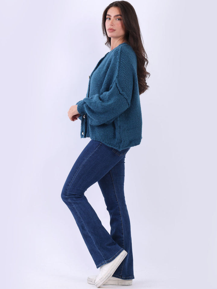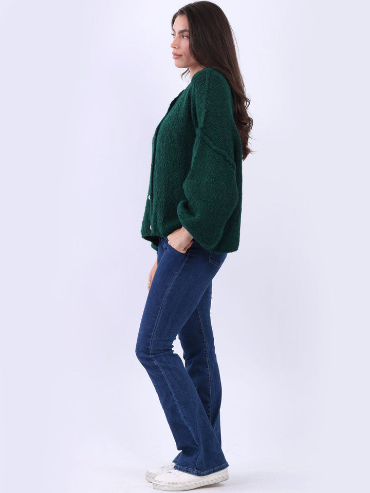Front Buttons Knitted Plain Crop Wool Cardigan