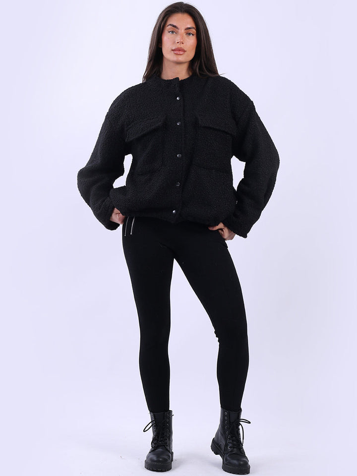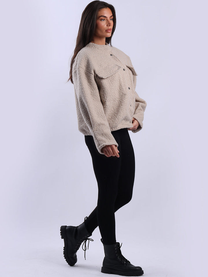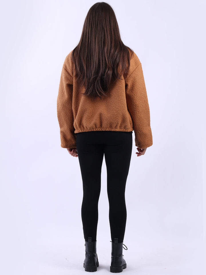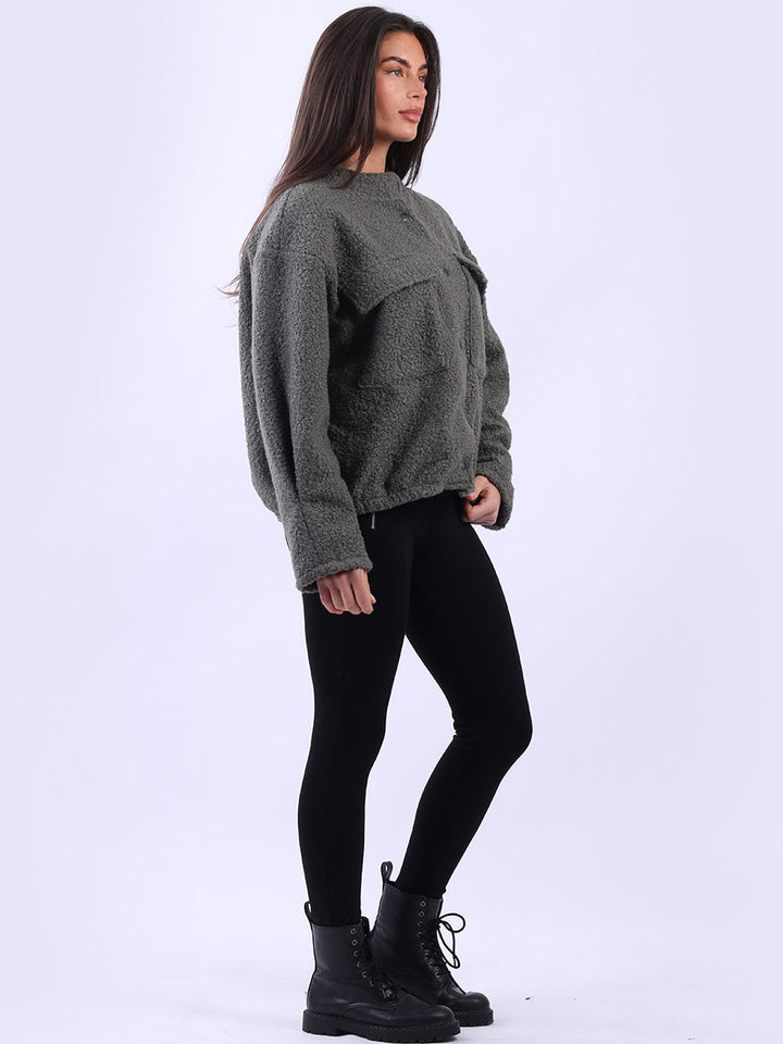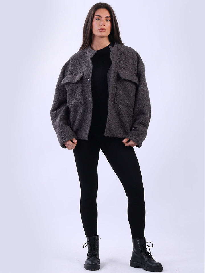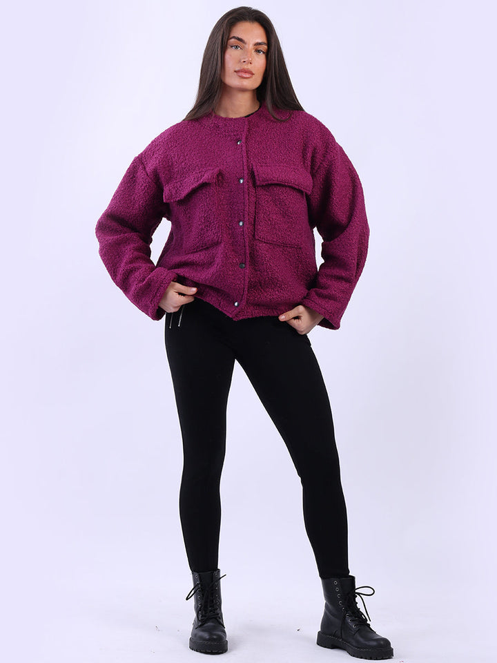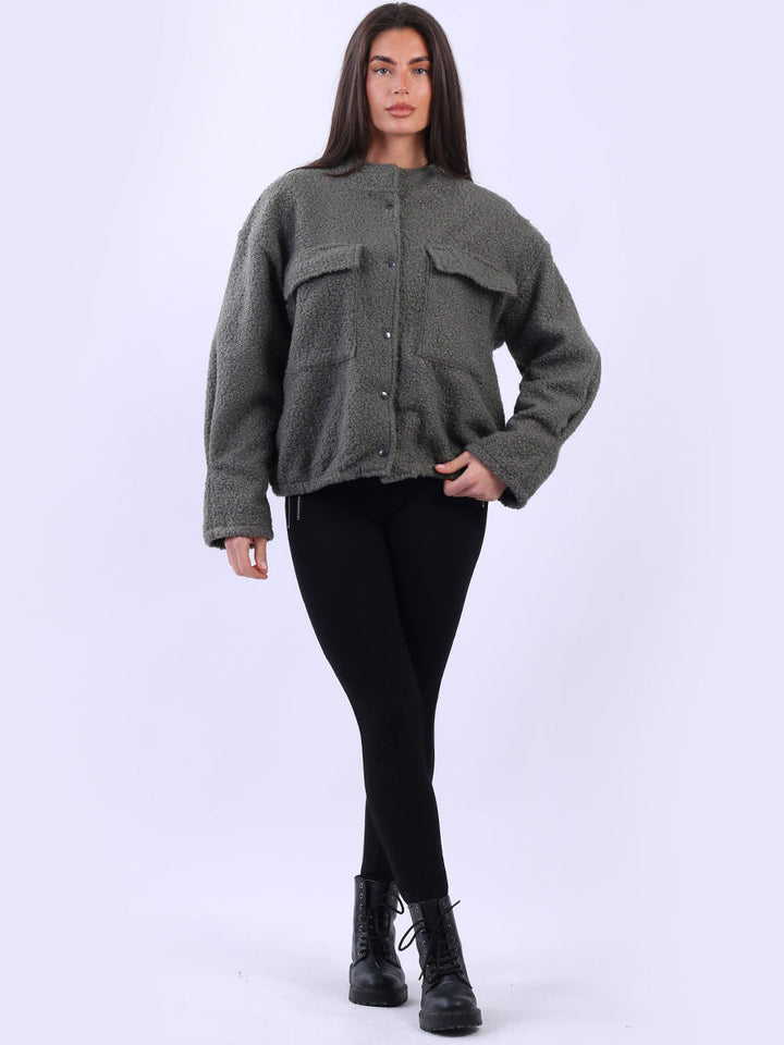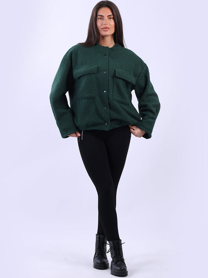 An effortlessly chic woolen jacket by Online Clothing store USA for women wearers who exude confidence in every casual or formal gathering with their timeless fashion sense. This piece radiates elegance and sophistication, featuring front flap pockets and a band collar. An ideal choice for those who appreciate everlasting winter style.