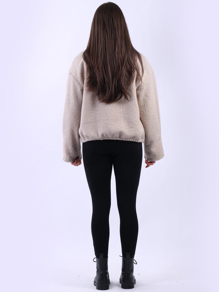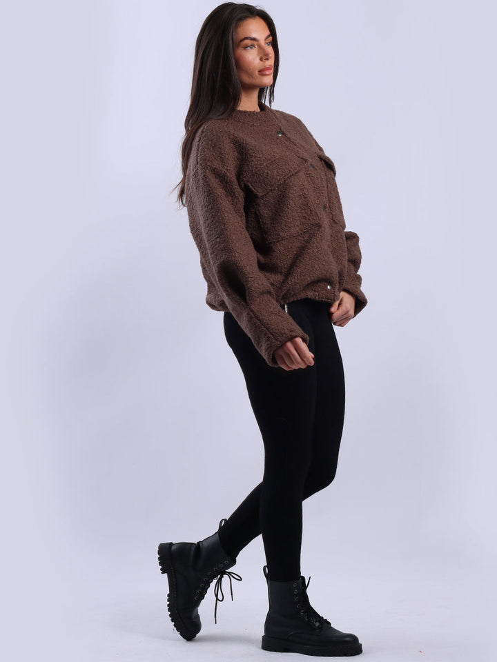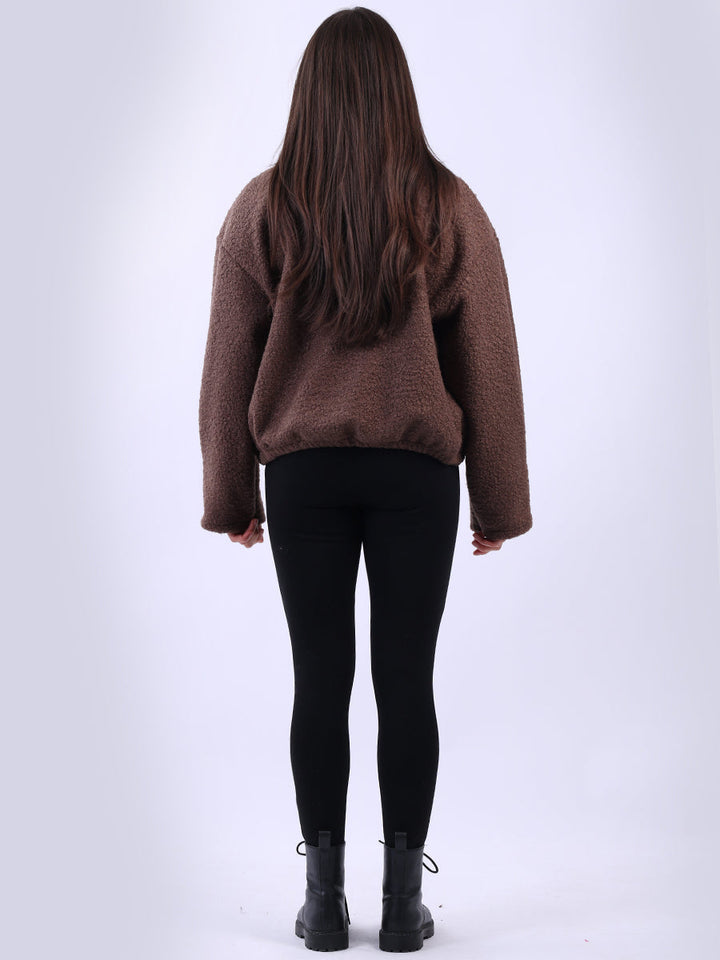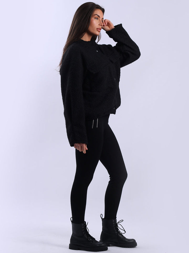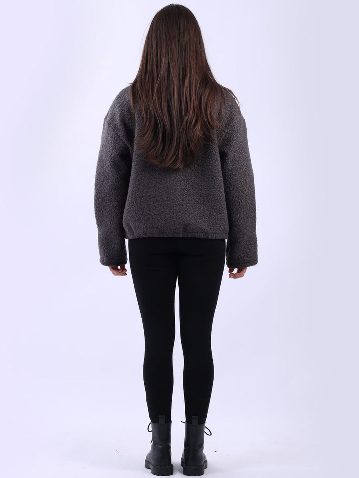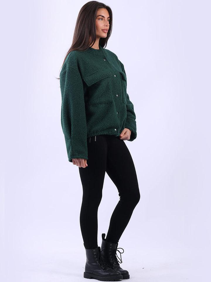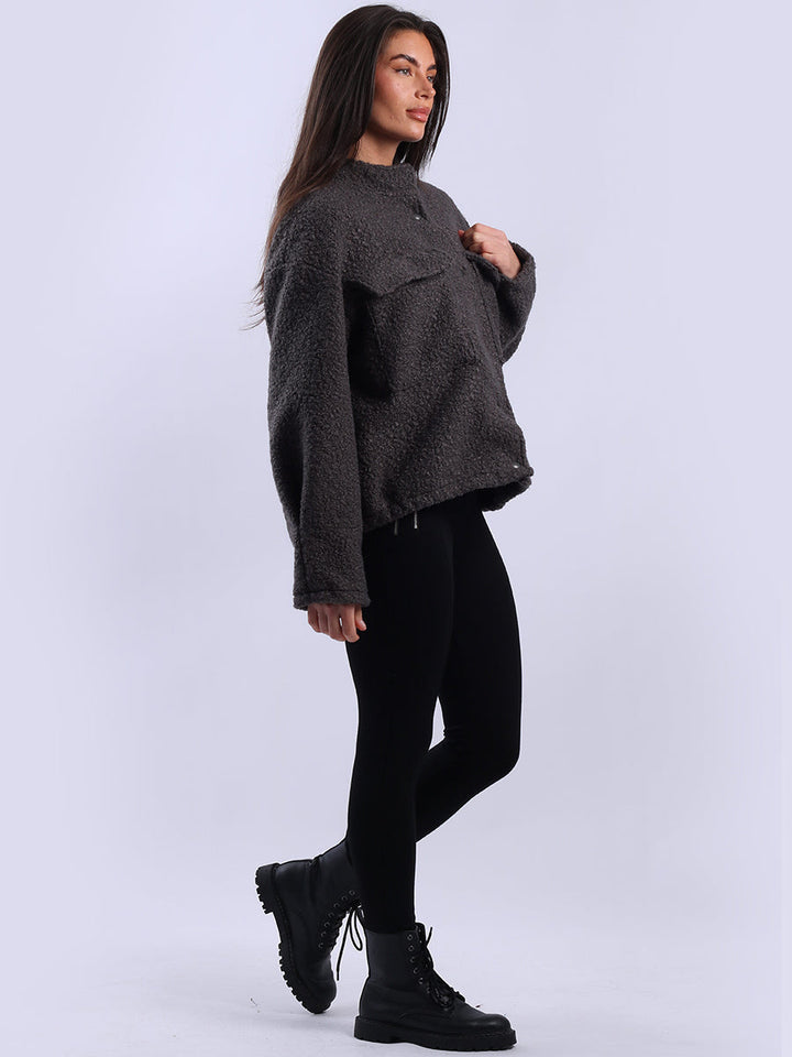 An effortlessly chic woolen jacket by Online Clothing store USA for women wearers who exude confidence in every casual or formal gathering with their timeless fashion sense. This piece radiates elegance and sophistication, featuring front flap pockets and a band collar. An ideal choice for those who appreciate everlasting winter style.