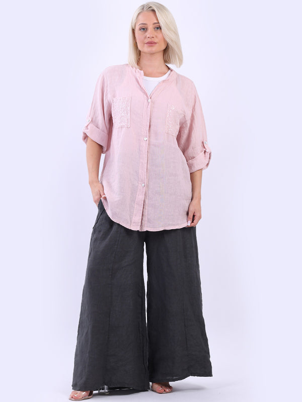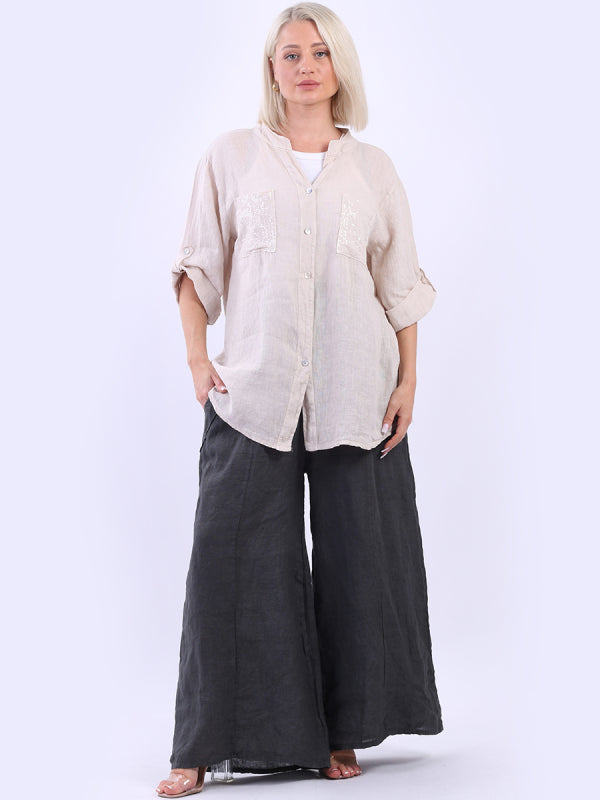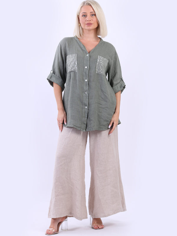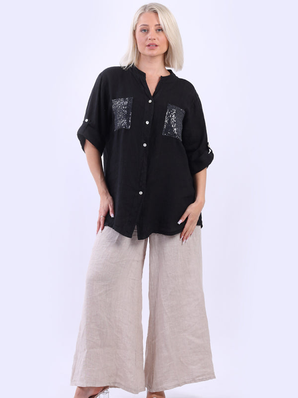 Italian Button Down Sequin Linen Shirt Top
