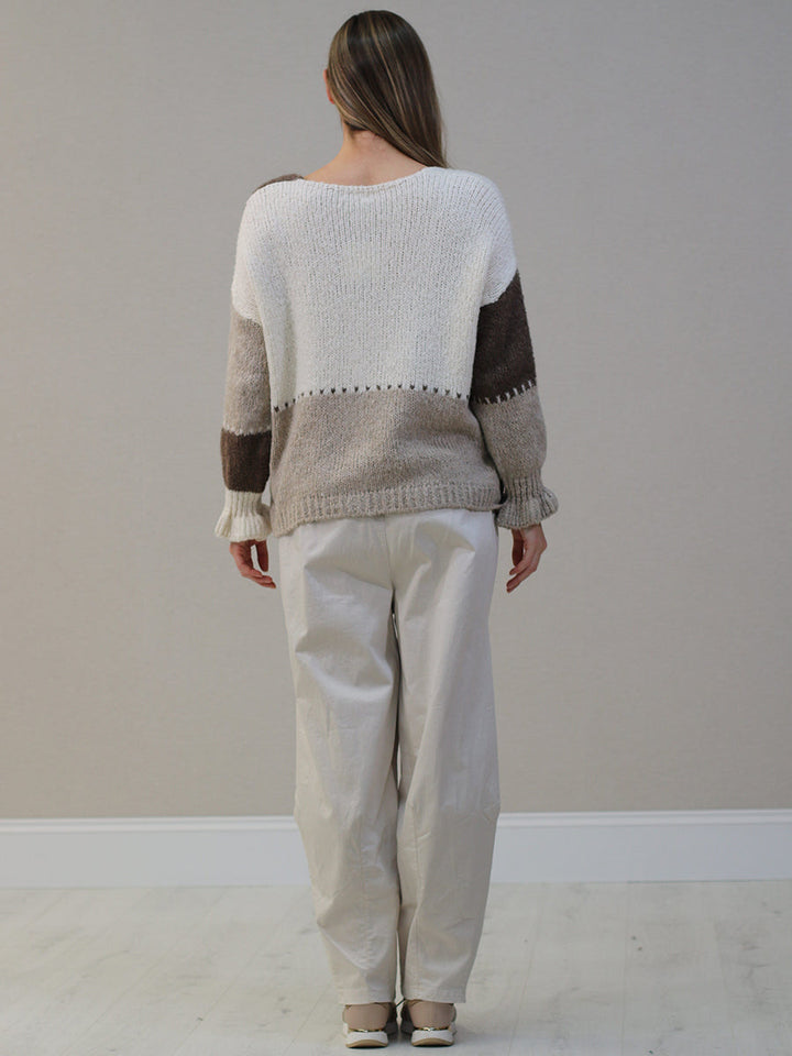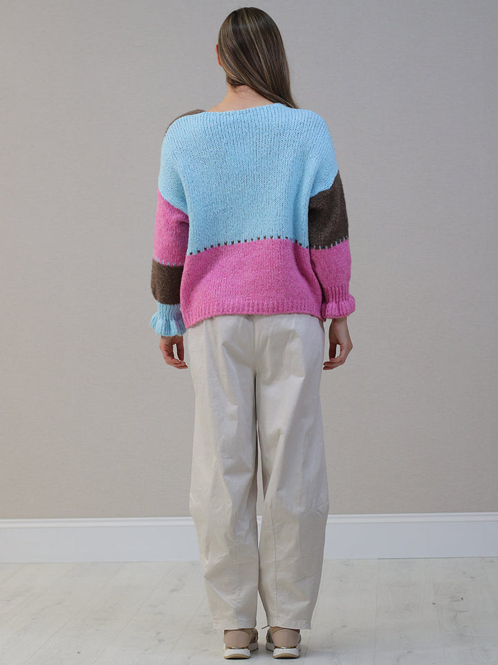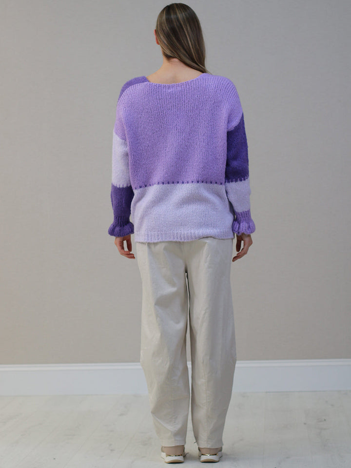 Wrap yourself in this luxury knitted cardigan from Purple Wholesale. This cozy-chic cardigan is made in Italy with basic yet essential features, including mood-boosting color blocks, a timeless V-neck, front button fastening, dropped shoulders, a ribbed hem, and dreamy bell sleeves that women adore. Perfect for layering over everything in your closet.