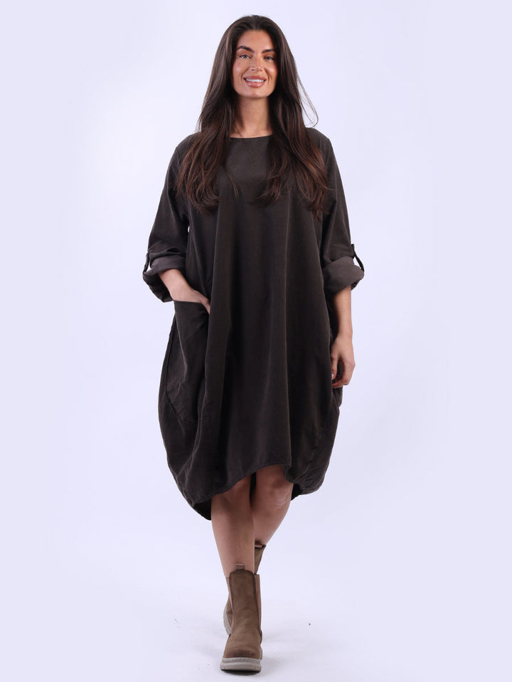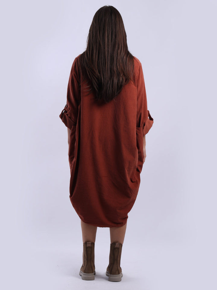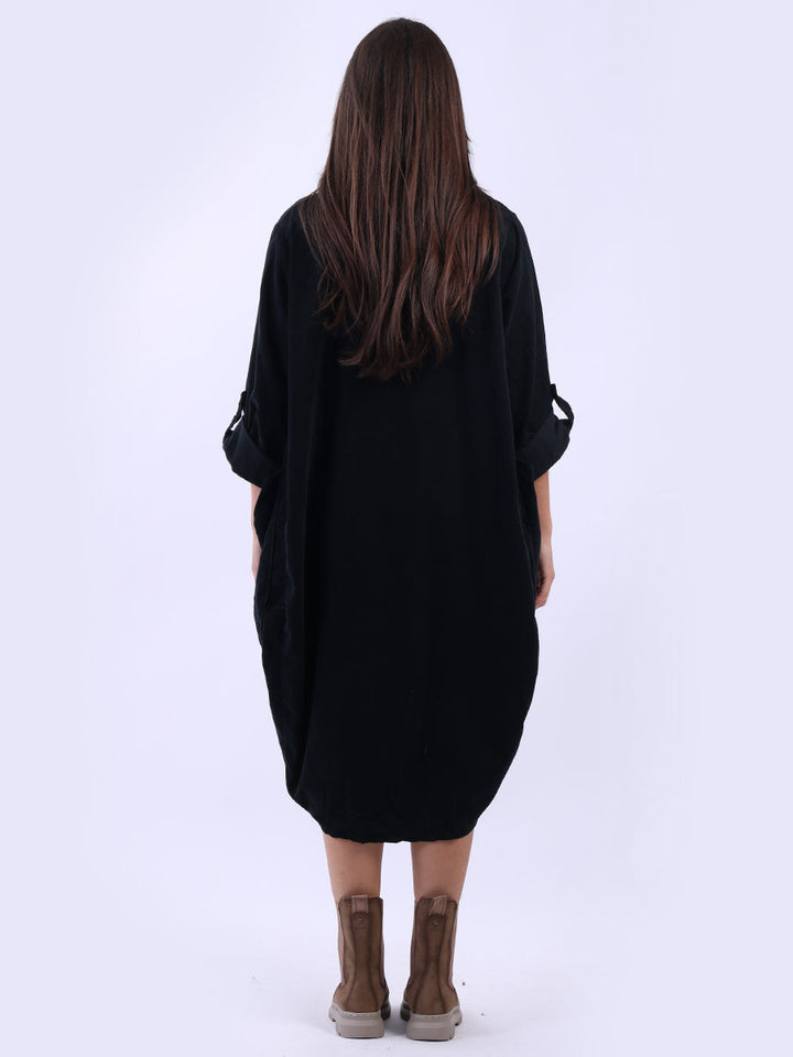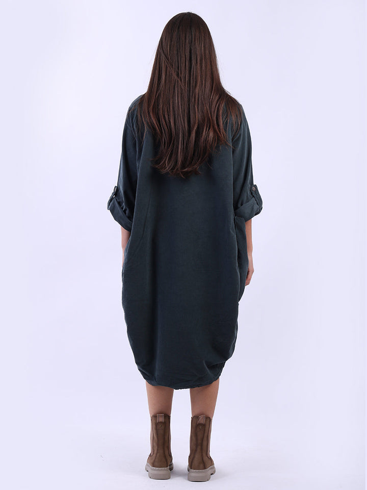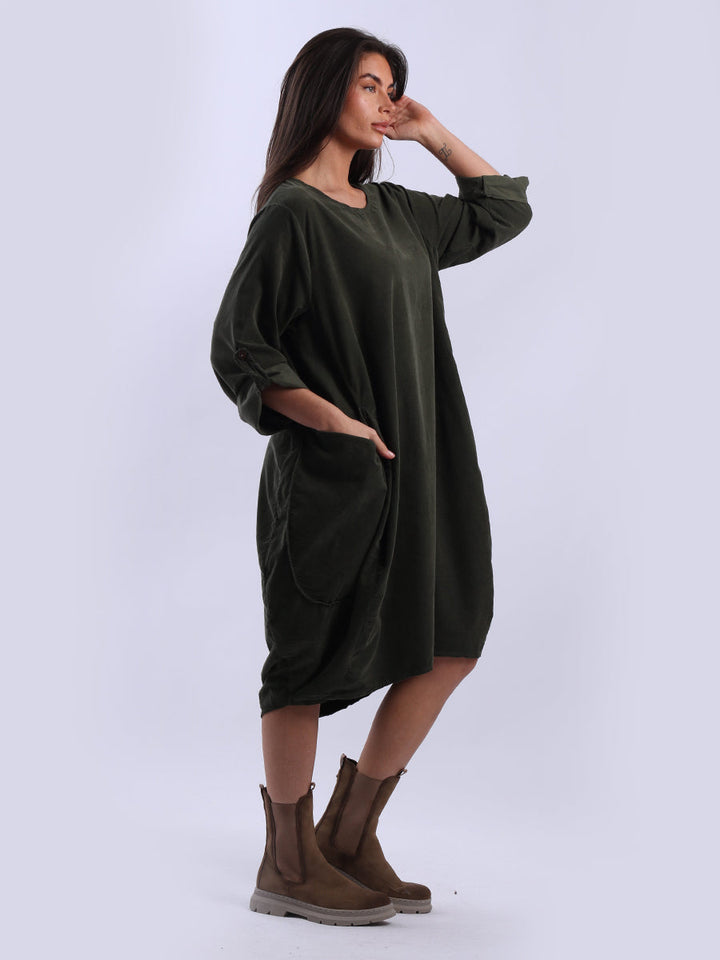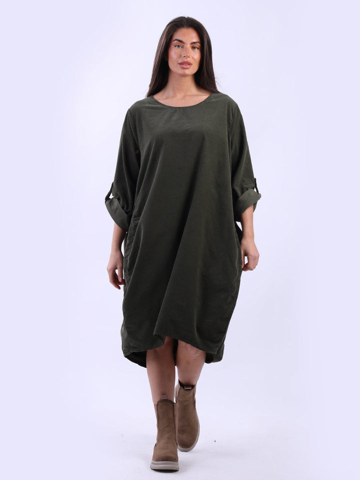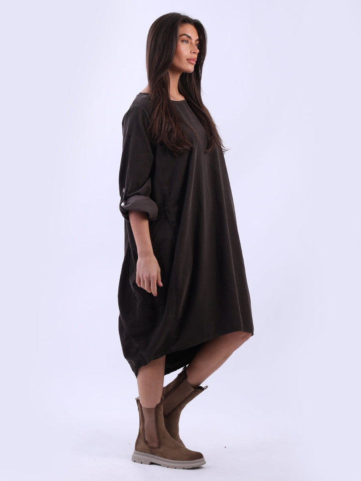 As winter arrives, this cotton corduroy lagenlook swing dress from Purplewholesale becomes a go-to fashion staple. Its oversized fit and tabbed sleeves make it suitable for transitional weather, it is stunning to layer with a jacket. A must-have for versatile seasonal dressing.