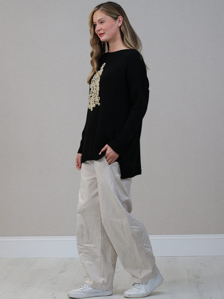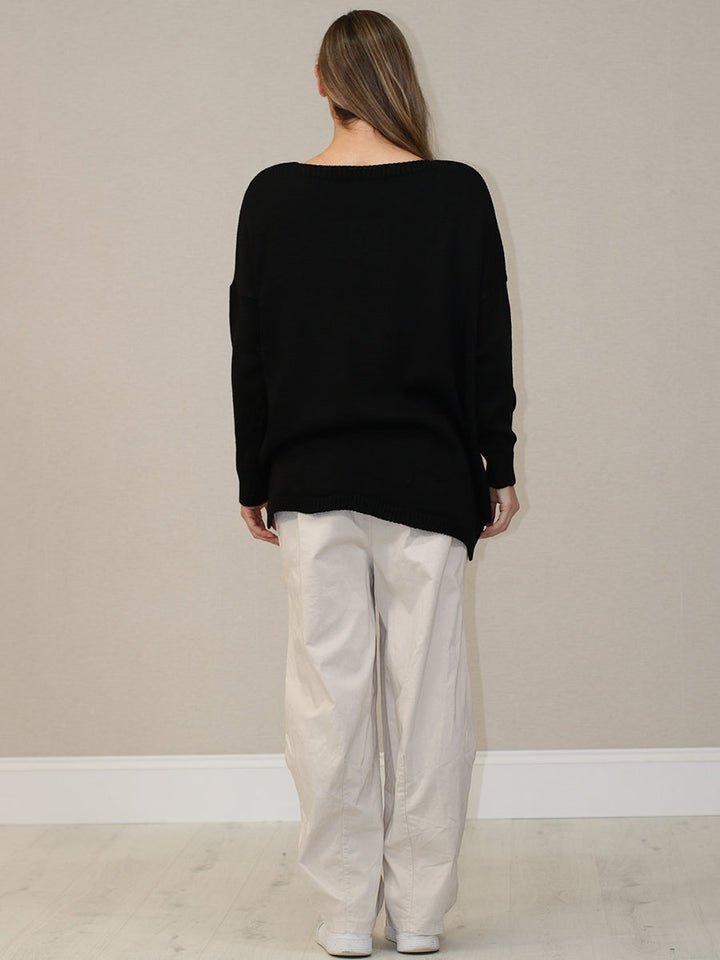 Women will steal the show during this festive season in this stunning crochet jumper from Purplewholesale, lovingly made in Italy. The golden Christmas tree adds a lovely elegance, perfect for special family photos or joyful festive dinners. The comfy knit keeps ladies warm and stylish throughout the season. This baggy jumper is ideal for women who want to spread some holiday joy with elegance.
