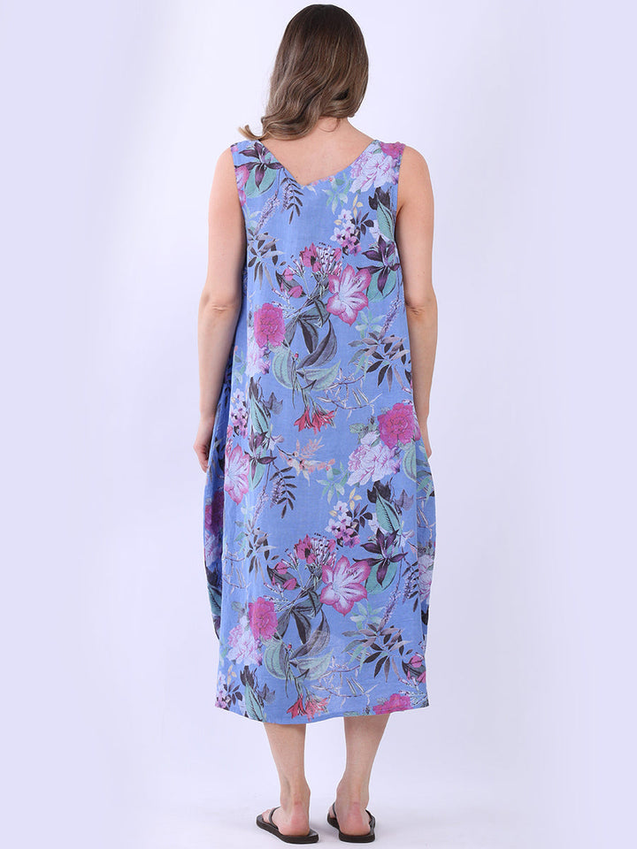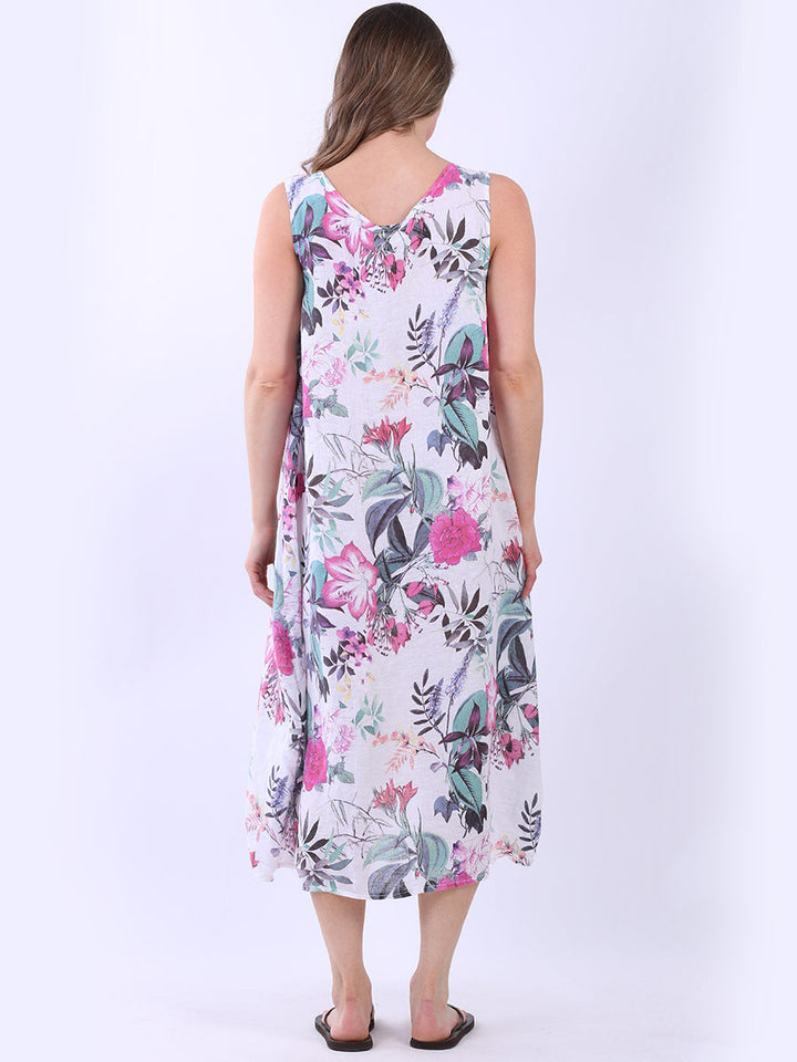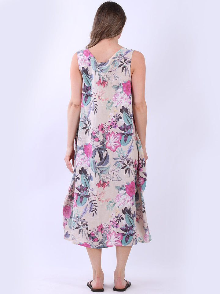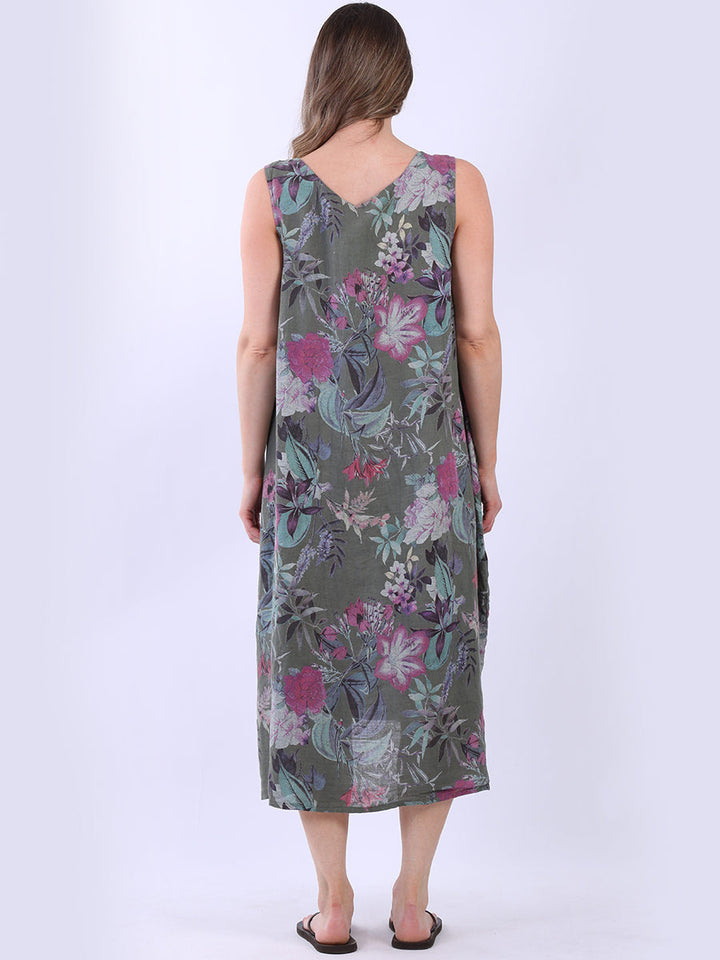 Italian Floral Linen Lagenlook Sleeveless Tank Dress
