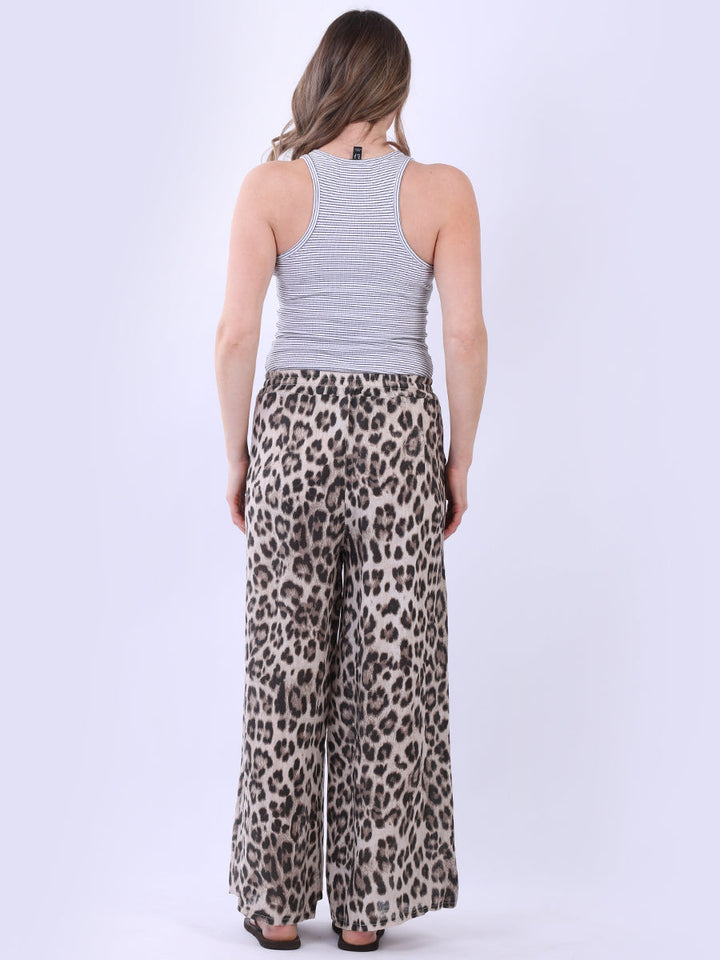 A bold statement in the language of comfort. These Italian linen trousers, with their bold leopard print and wide-leg design, balance wild spirit and laid-back ease. A summer season staple from Purple Wholesale for women who stand out with quiet confidence.