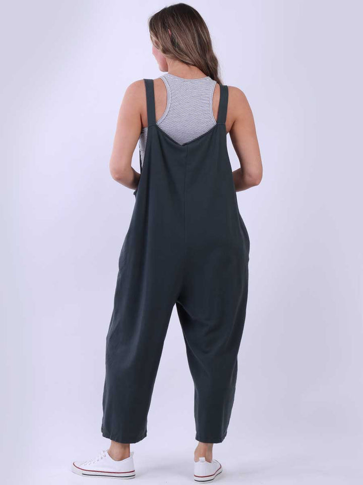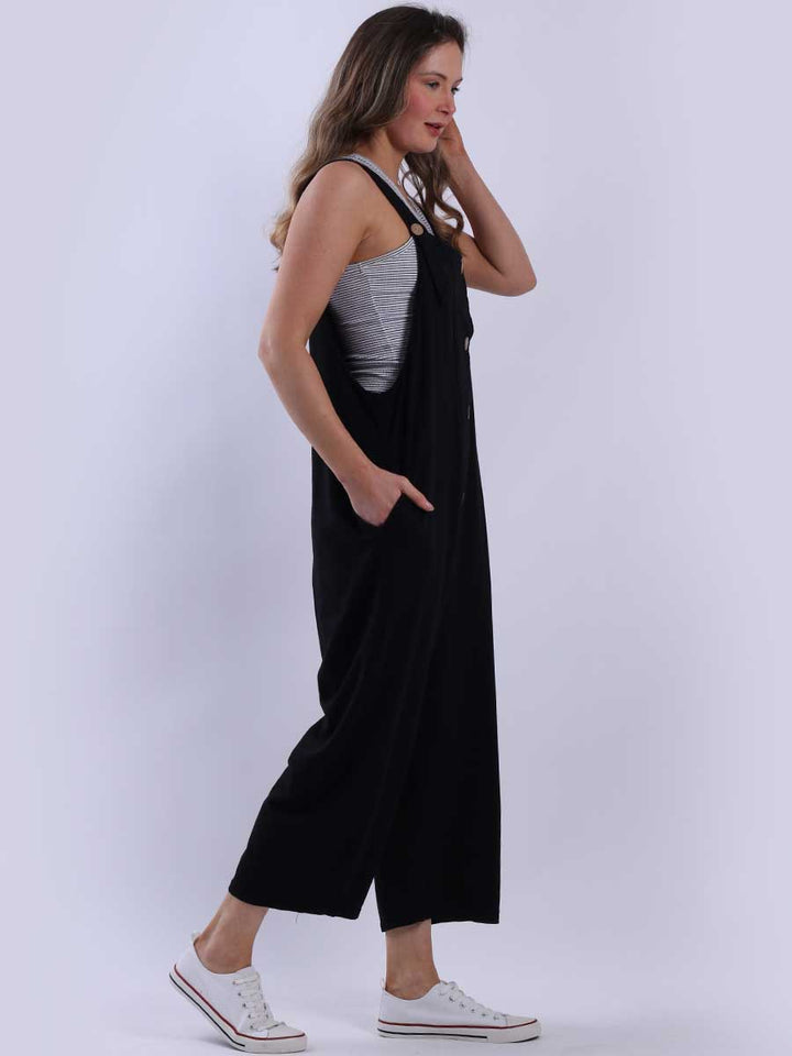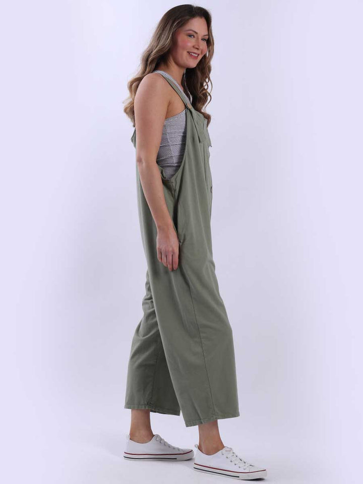 This Italian solid dungaree presented by Purplewholesale is a game-changer for casual spring and summer outfits. Made in Italy from breathable cotton, it has a relaxed fit that lets women move comfortably. The adjustable straps and functional buttons provide the perfect fit, and the handy pockets make it super practical for everyday use. Its simple style is just right for daytime outings, mixing a relaxed vibe with classic versatility.