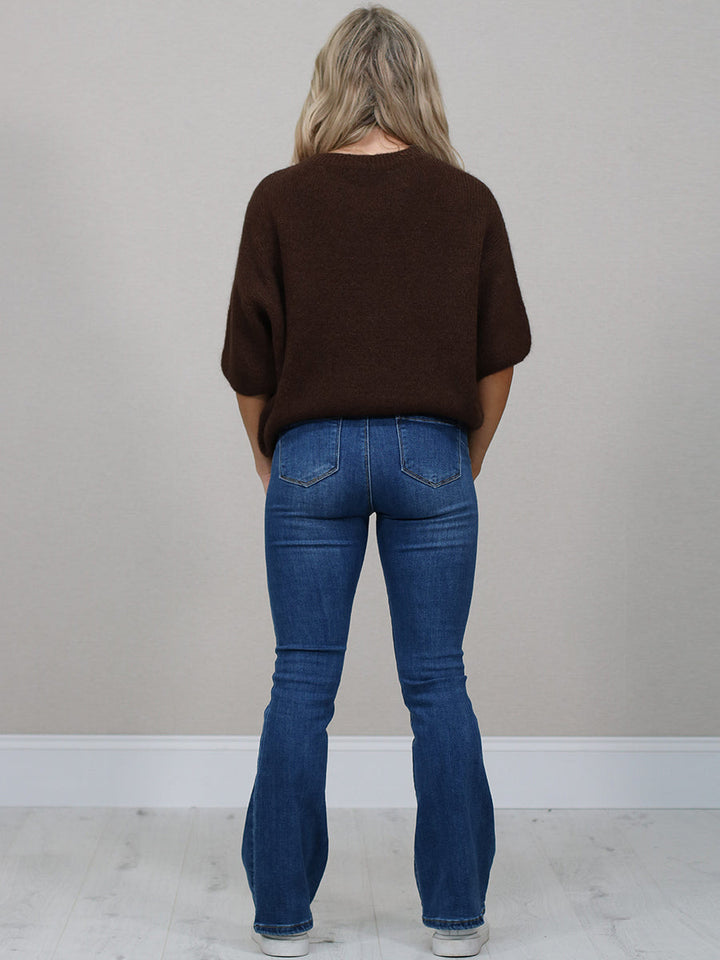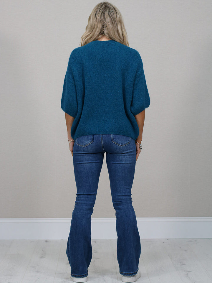 Ladies can effortlessly elevate their winter wardrobe with this basic yet essential plain cropped jumper. Made in Italy, this cosy jumper is crafted from soft knit fabric and has features like a classic crew neckline, relaxed baggy sleeves, and a flattering cropped length. Perfect for pairing with high-waisted trousers, jeans, or skirts.