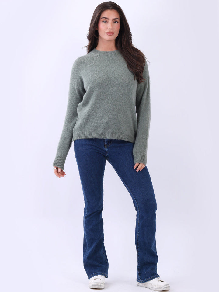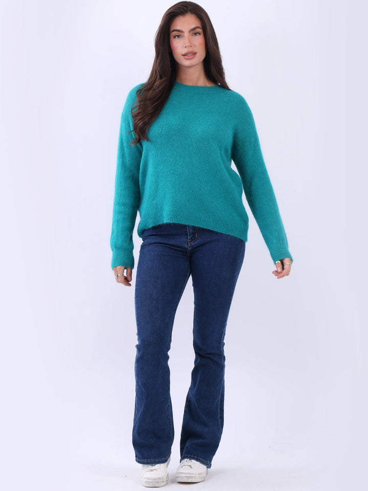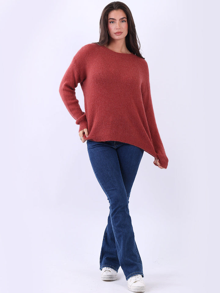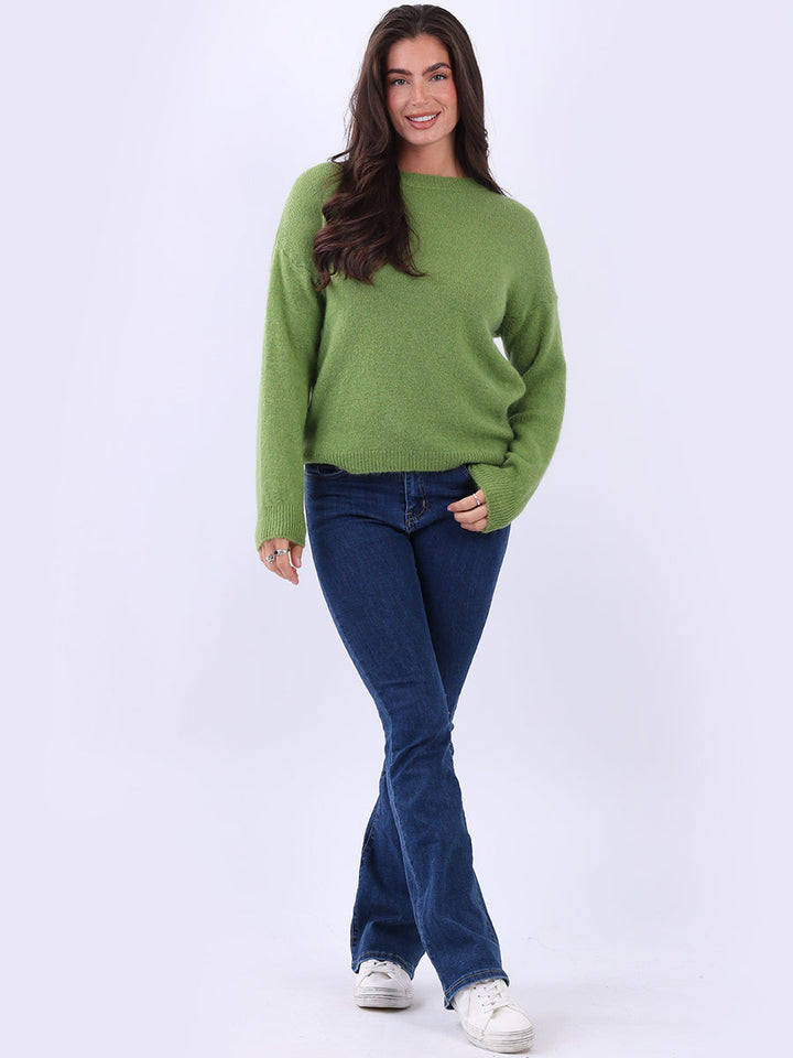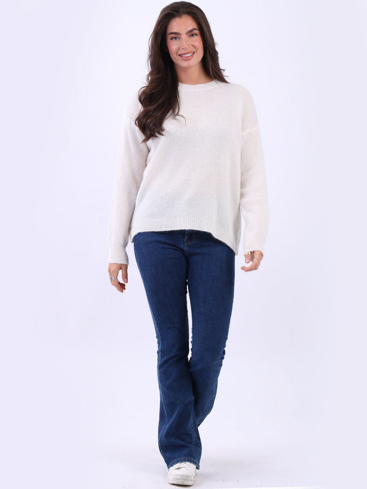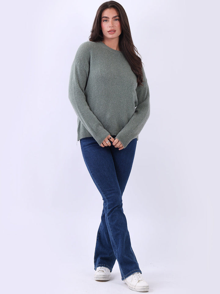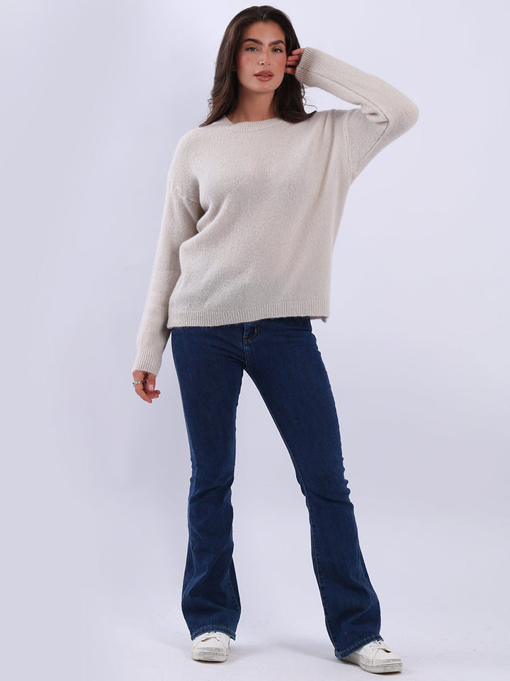Italian Plain Ribbed Neck Boxy Knit Jumper