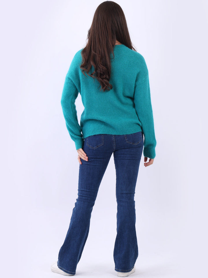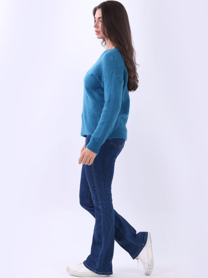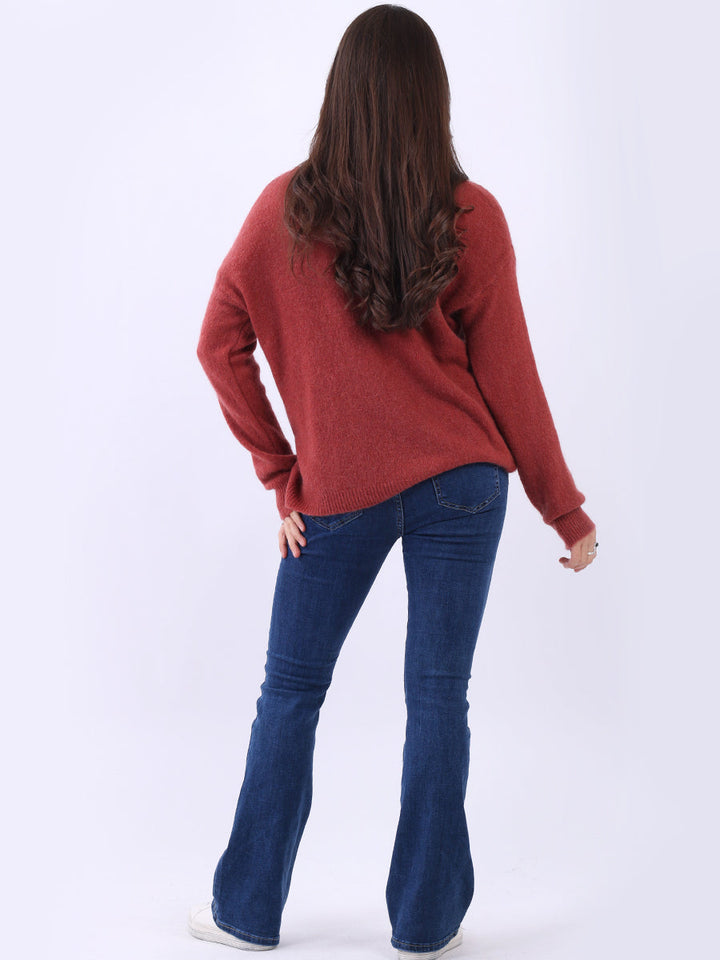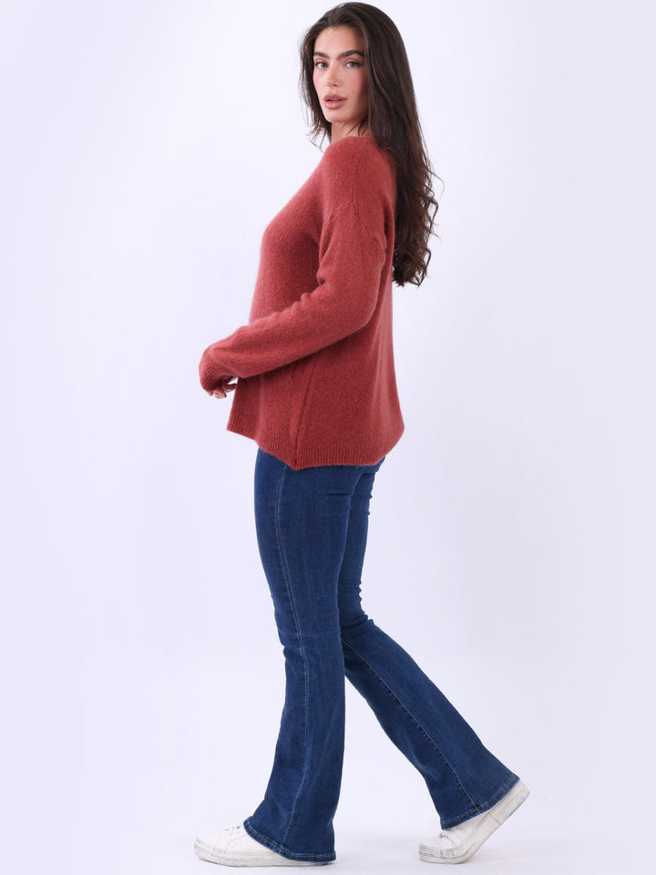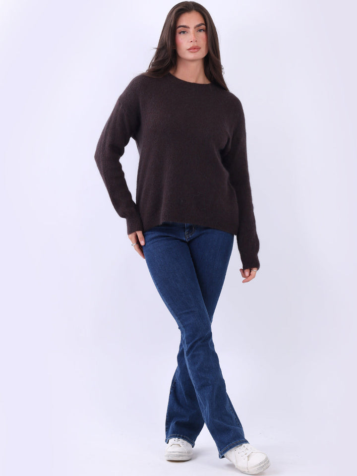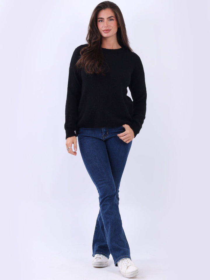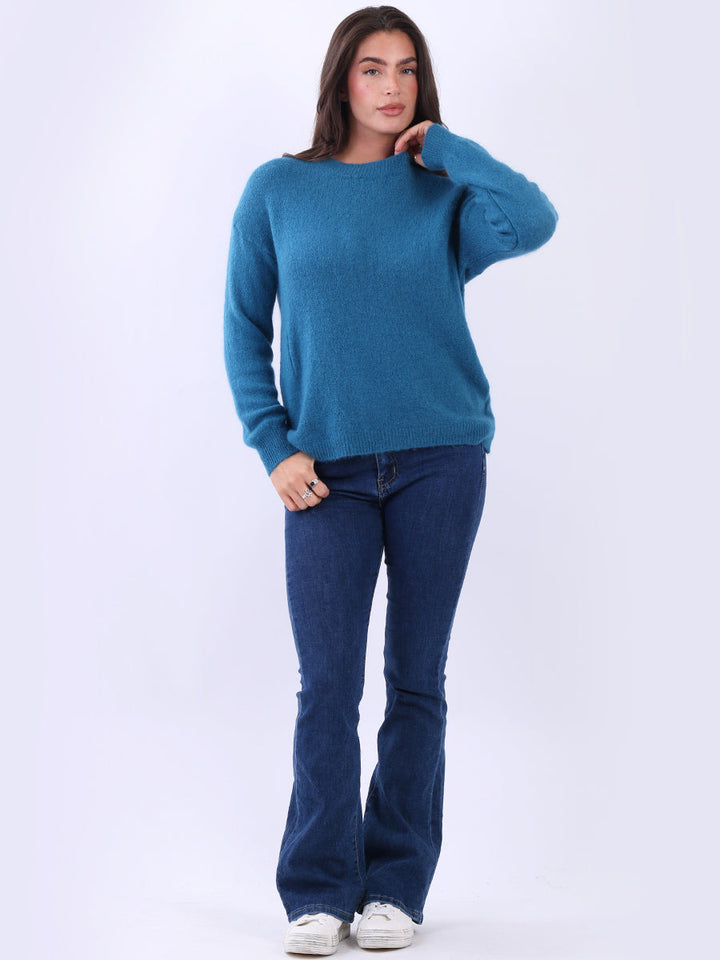 Italian Plain Ribbed Neck Boxy Knit Jumper