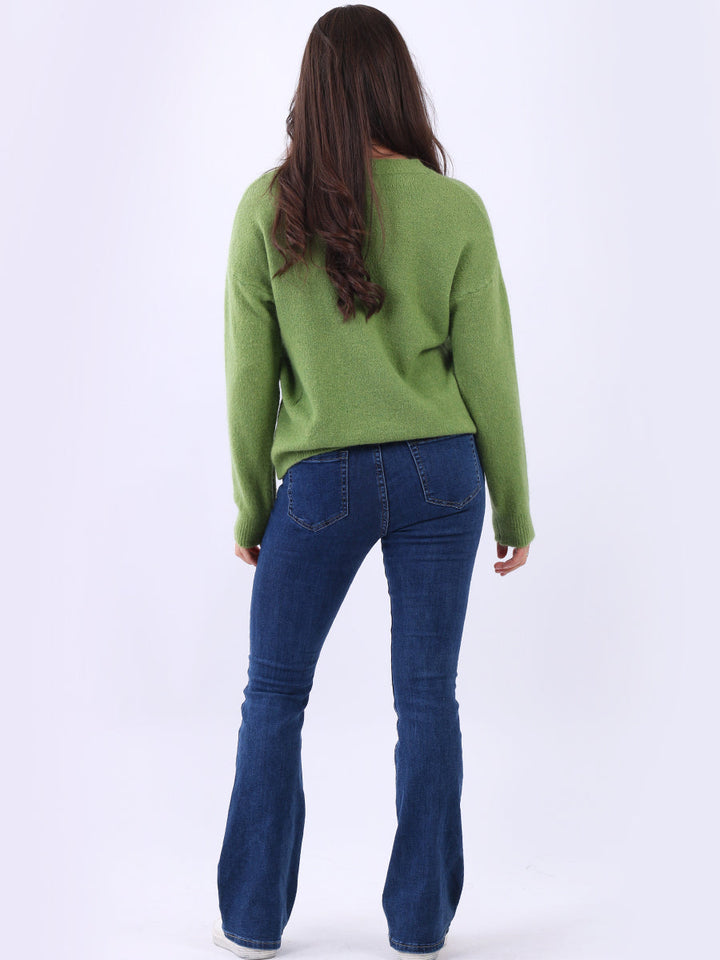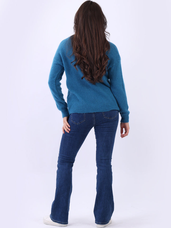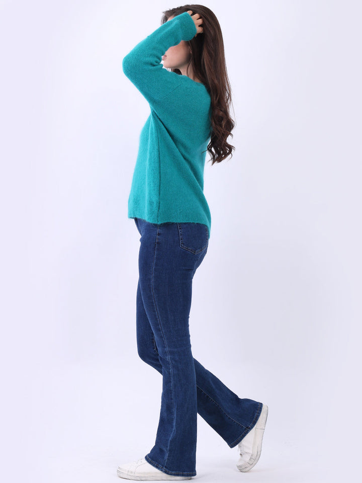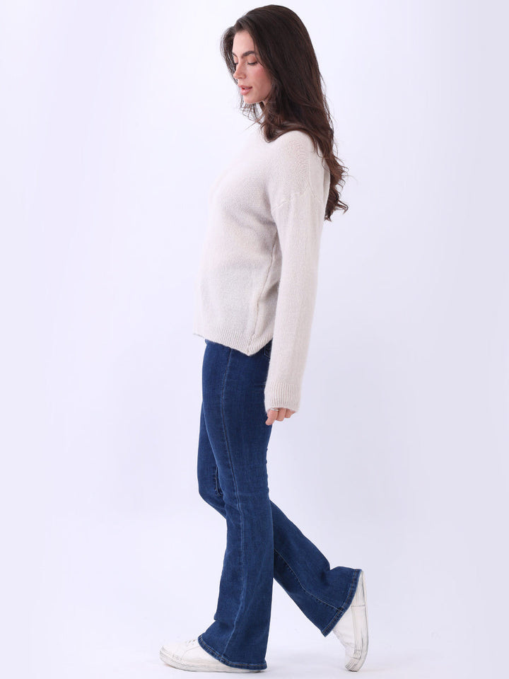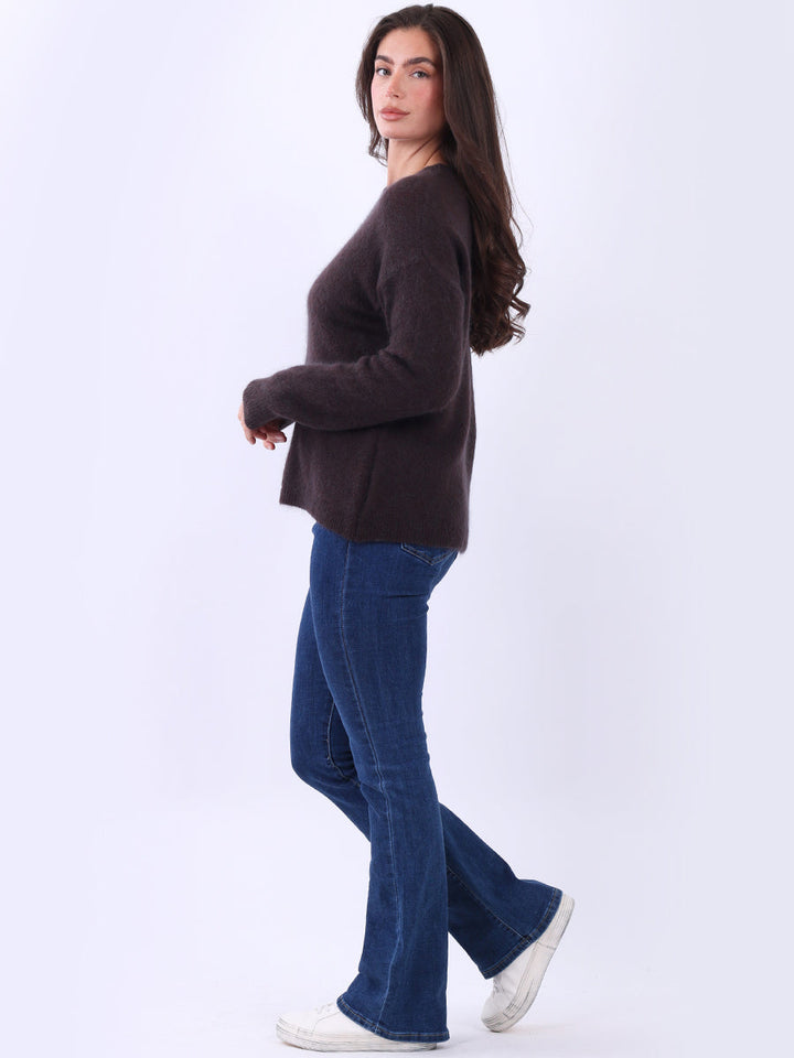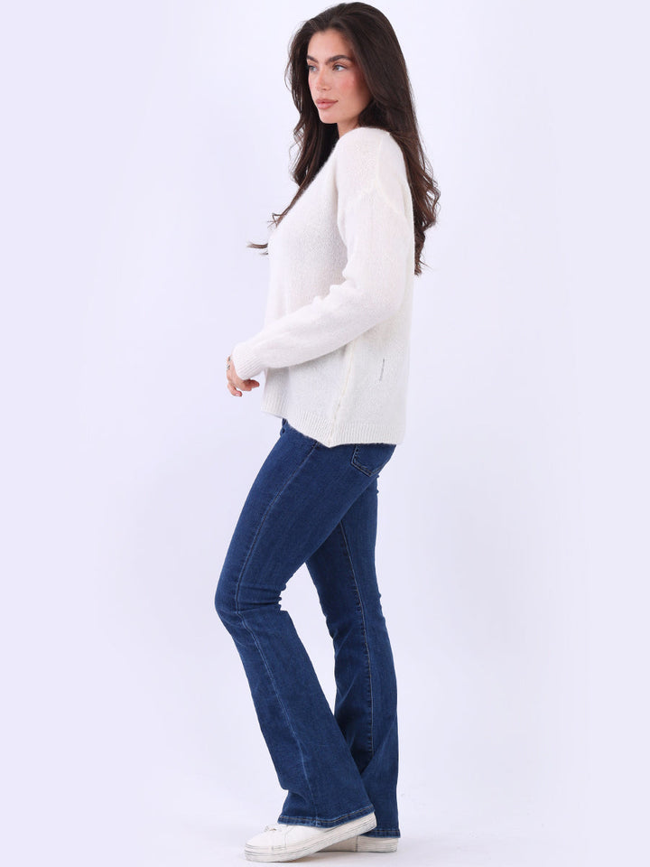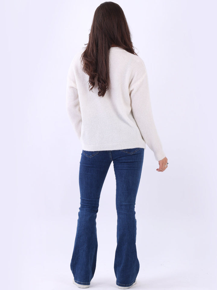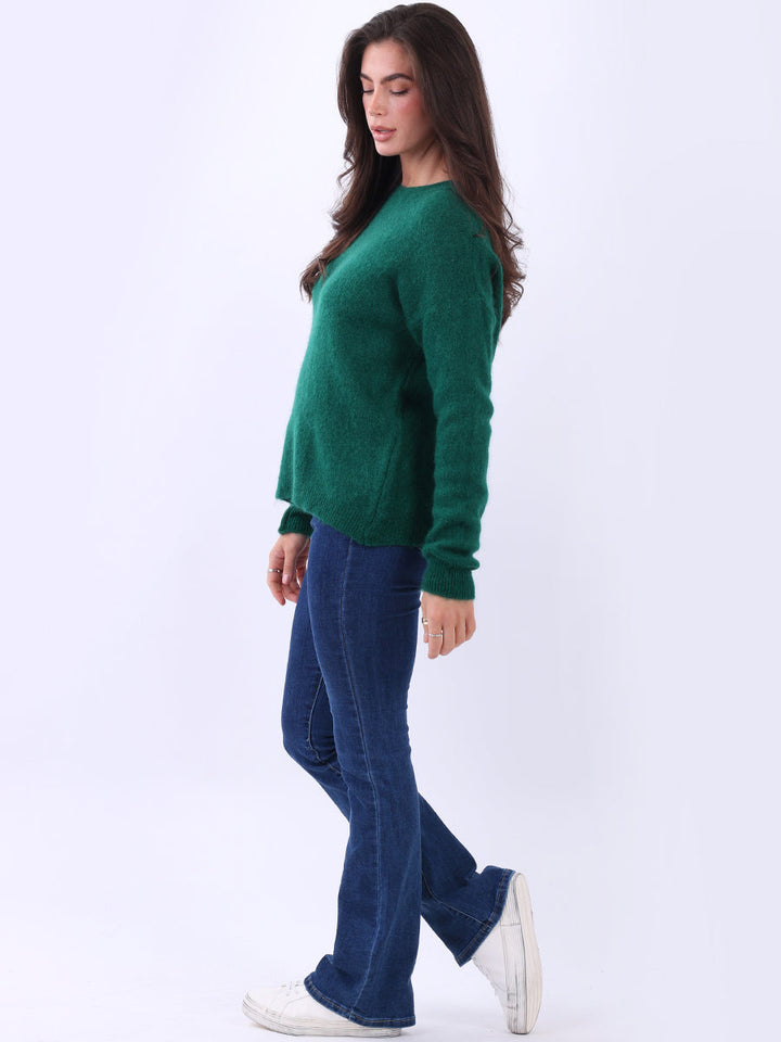 Italian Plain Ribbed Neck Boxy Knit Jumper