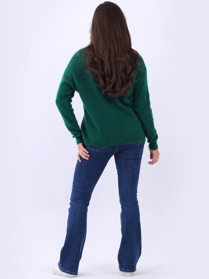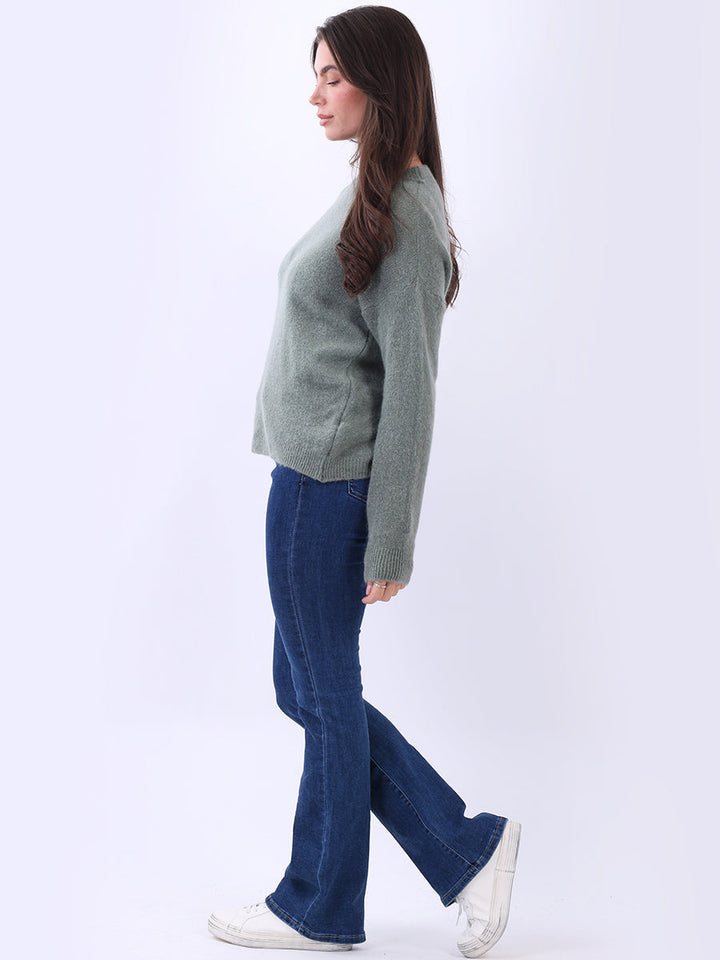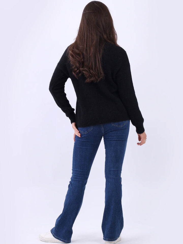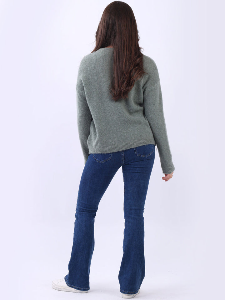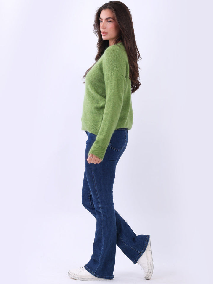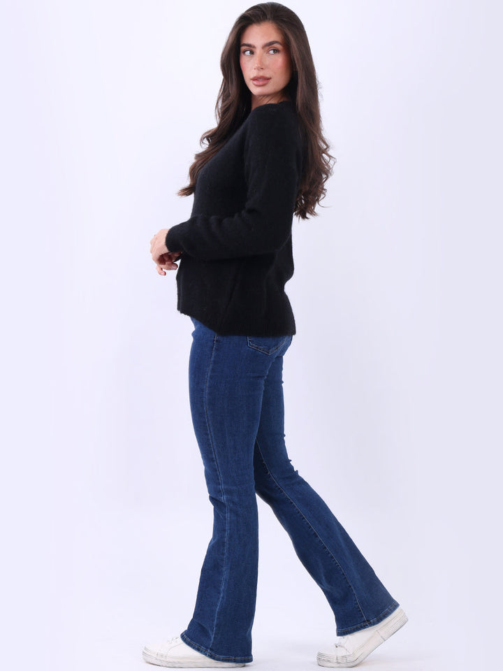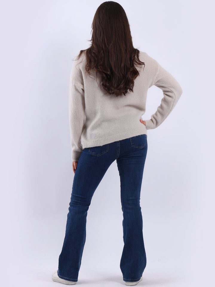 Italian Plain Ribbed Neck Boxy Knit Jumper