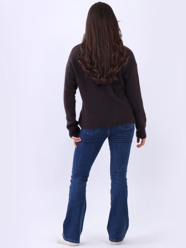 Purplewholesale’s solid boxy knit jumper is a must-have for any winter wardrobe. Designed with drop shoulders, ribbed crew neck, and baggy sleeves it is all about comfort and style. Women can easily pair it with pants for a relaxed yet classy look.