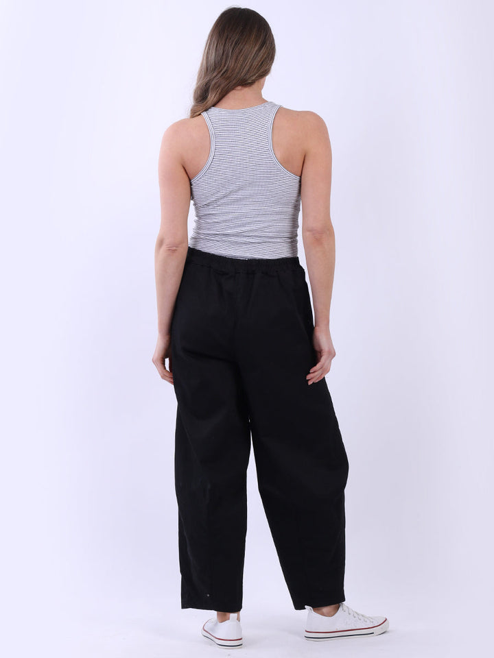 These solid-colored loose-fit trousers provide simplicity, elegance and ease for ladies who value its attractiveness in casual wear. Designed by Purplewholesale online clothing store for movement and comfort, they drape like a gentle whisper against the skin, thus ideal for daily elegance. Styled with a neat blouse and loafers, they produce a classic, easy-going look that never goes out of fashion.