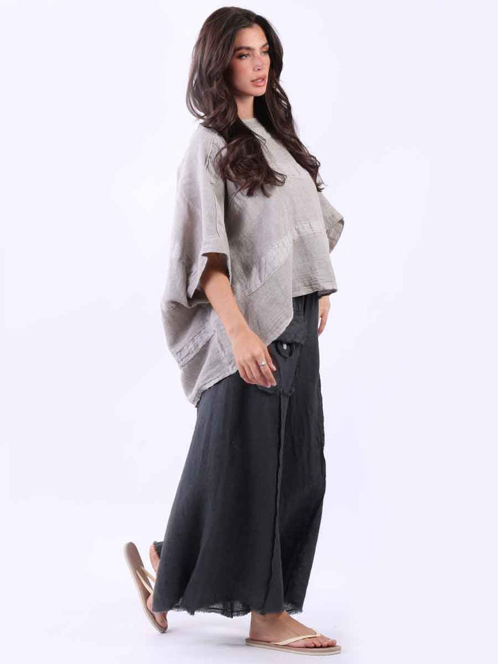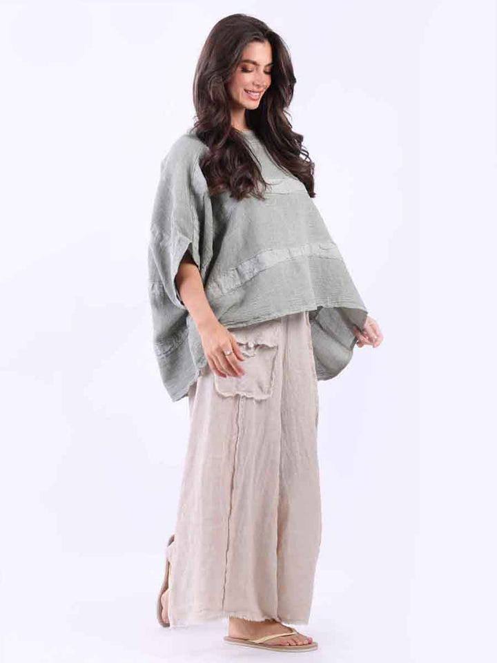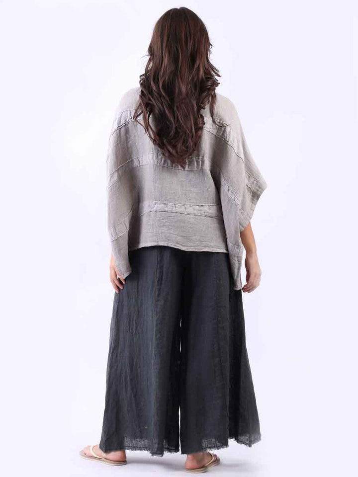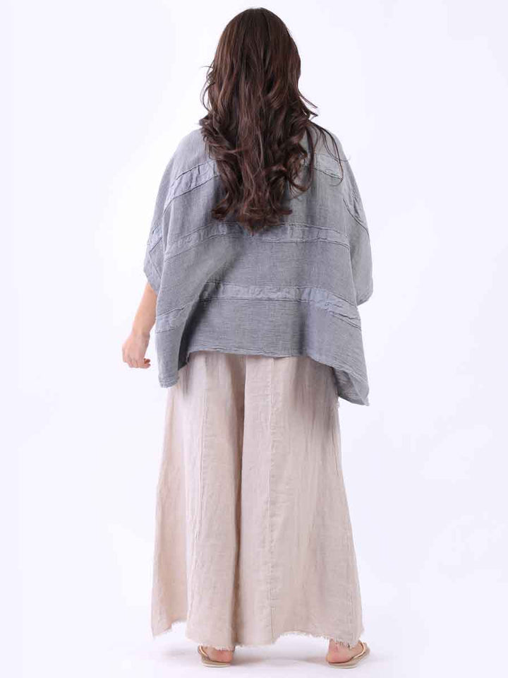 Stay effortlessly stylish in this vintage wash plus size top from PurpleWholesale, crafted in Italy from a breathable cotton-linen blend. Designed with a flattering boat neckline and relaxed batwing sleeves, it drapes beautifully over curves for an easy, oversized fit. The soft stripe pattern and vintage wash finish add a touch of timeless charm, making it the perfect blend of comfort and understated elegance for everyday wear.