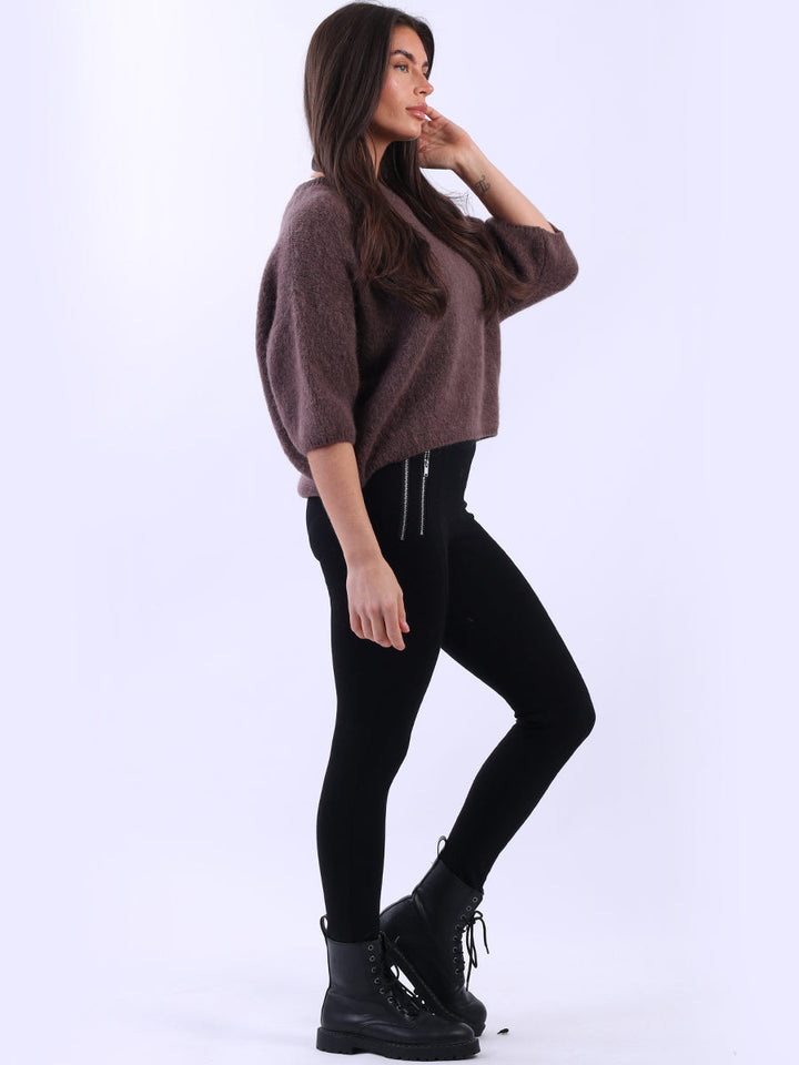 Purple wholesale fashion boutique in Texas presents a solid baggy jumper designed to make an impression. Its crew neck adds comfort, while the cropped design lends a contemporary edge—a simple yet versatile piece for pairing with various winter outfits.