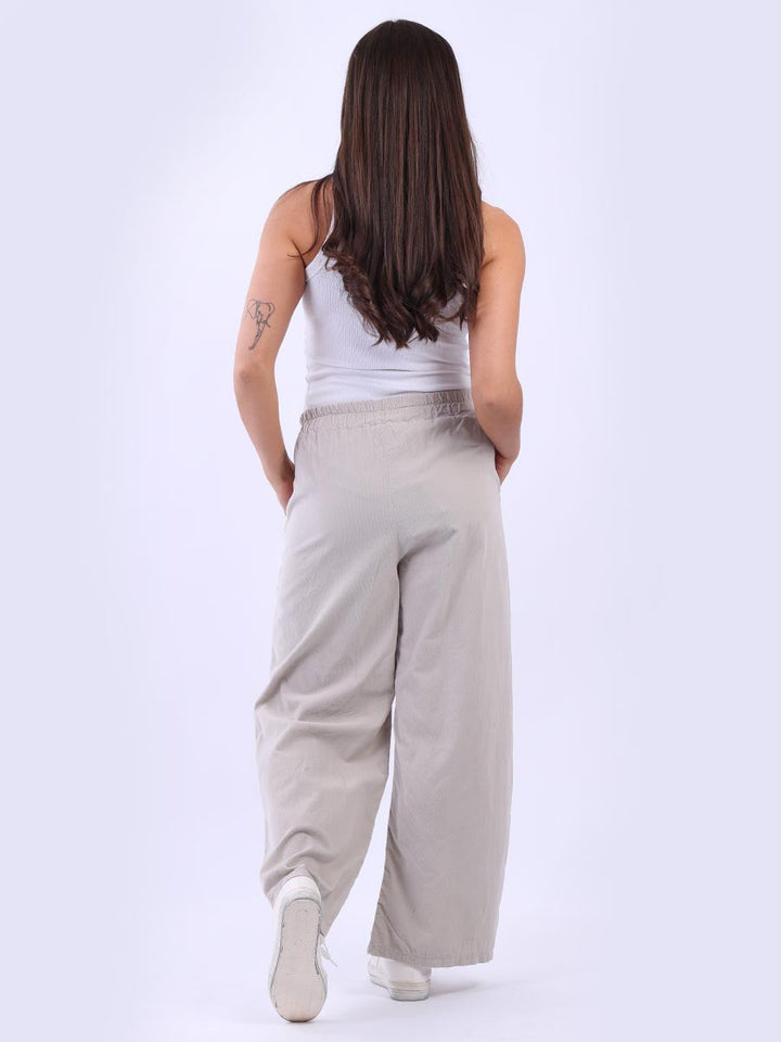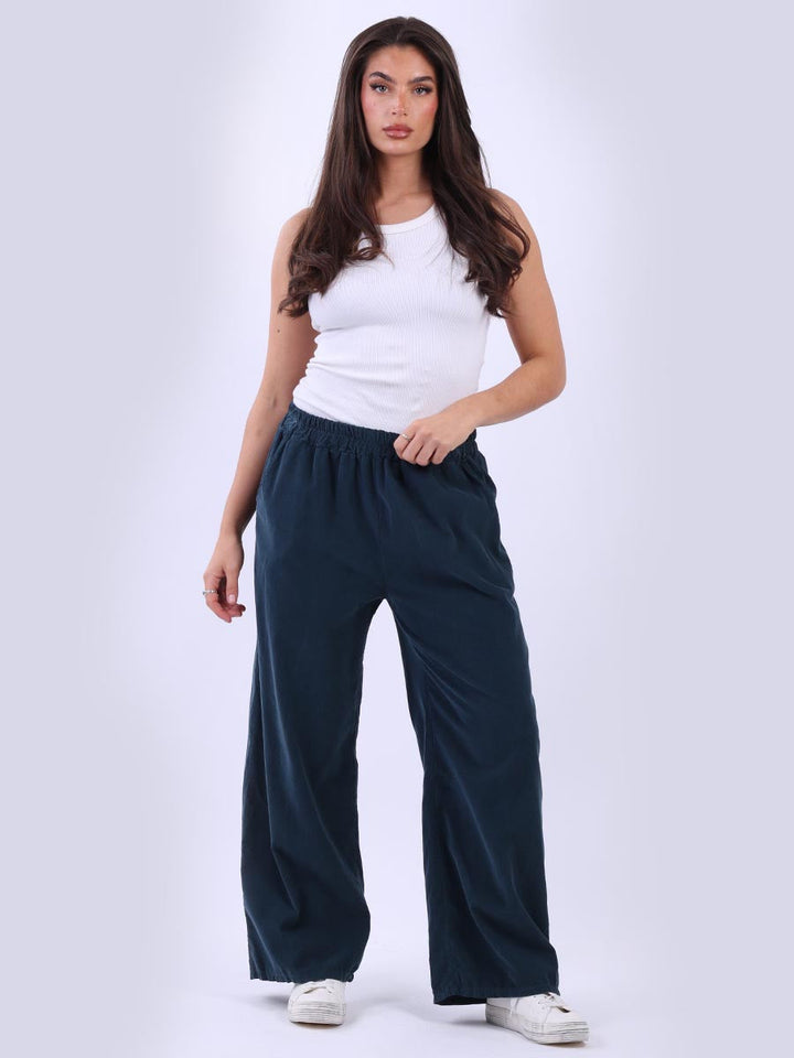 Imagine slipping into these plain cotton corduroy trousers on a misty morning. They are not just trousers, but a cocoon of comfort with a blend of style. Featuring an elastic waist, side pockets, and a wide-leg design, they are modern and trendy. Women wearers would love to pair them with a knitted jumper for an evening walk on fallen leaves.