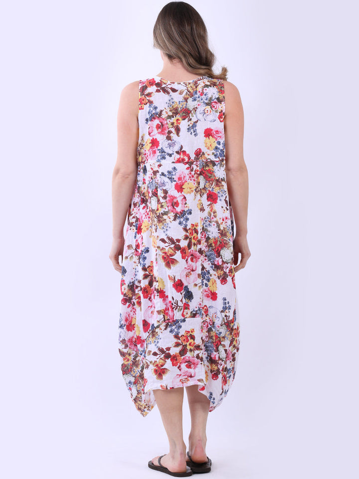 Meet the outfit that performs all around! On those sunny, warm days when women simply want to toss on something and feel immediately put together, this sleeveless linen dress is ideal. The soft floral print lends a bit of romance, and the breathable fabric keeps things cool and comfortable. Wear it alone for that effortlessly beautiful look, or layer it when the breeze blows.