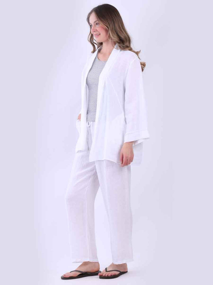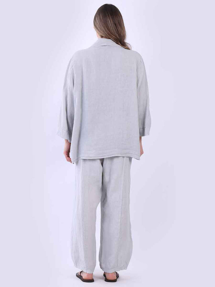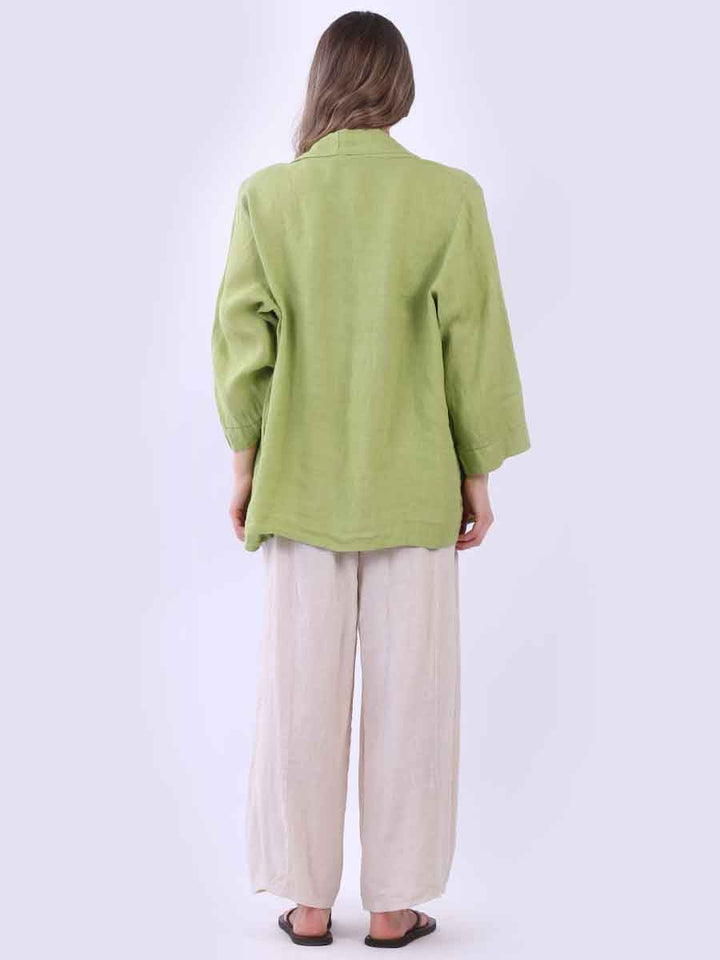 A lightweight, plain linen jacket from USA-based wholesale suppliers, offering a soft drape and a clean, solid finish. Ideal for layering, this piece suits women who prefer loose, airy fabrics. Pairs effortlessly with maxi dresses and wide-leg trousers in plus-size or lagenlook edits.