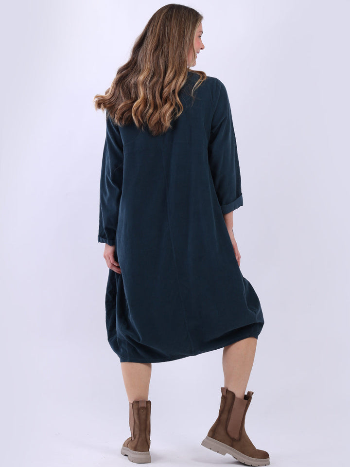 Purple Wholesale’s latest collection brings women this plain cotton corduroy lagenlook dress, perfect for the fall and winter seasons. With a round neckline, rolled-up sleeves, and side pockets, this dress exudes understated elegance. It is designed with a loose, relaxed fit that is both chic and comfortable – ideal for ladies who want to stay stylish as the weather cools down.