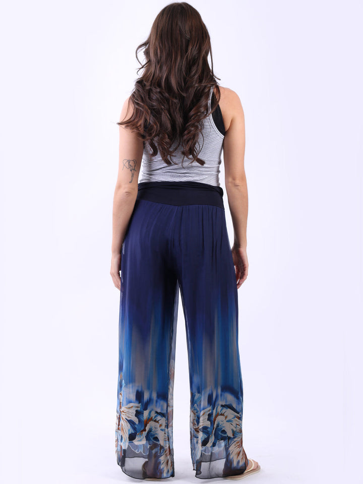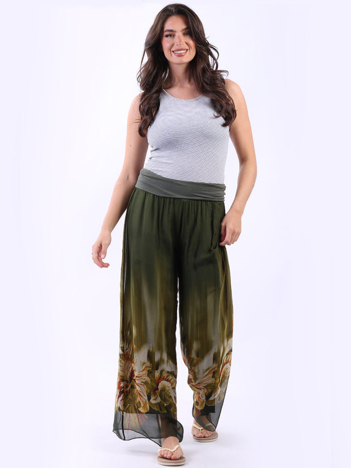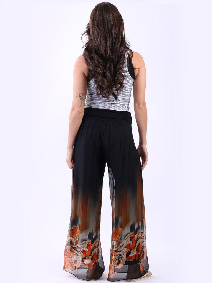 Made in Italy, these trousers from the latest silk collection of Purple Wholesale feature a graceful floral print and a flowing double-layered design. The wide elastic waistband ensures a comfortable fit, while the wide-leg silhouette offers effortless movement and refined elegance.