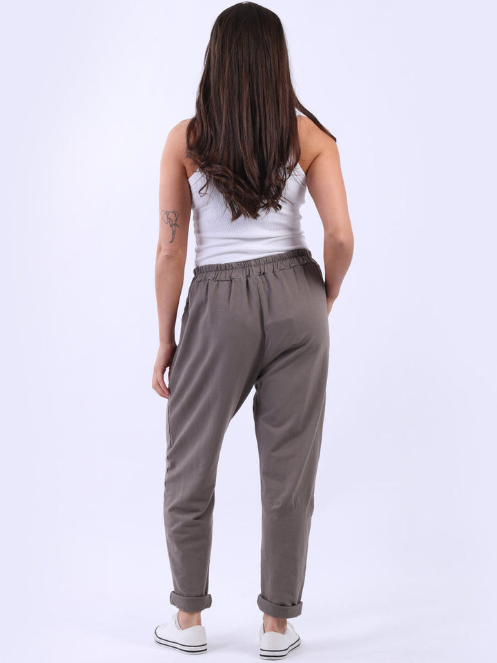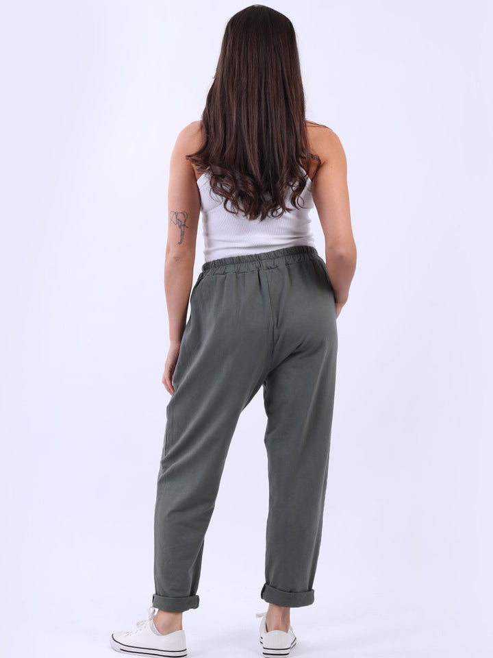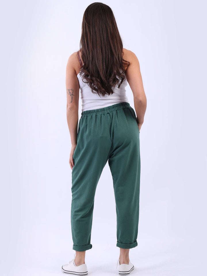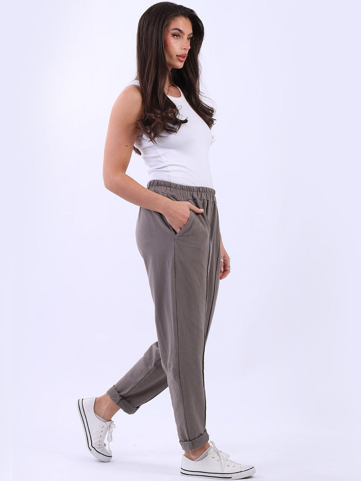 Ladies Solid Cotton Casual Sweat Trousers