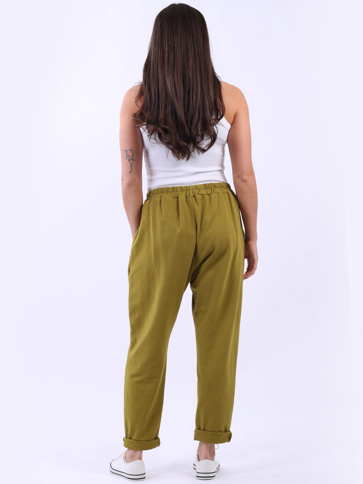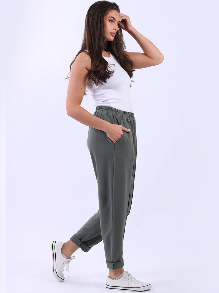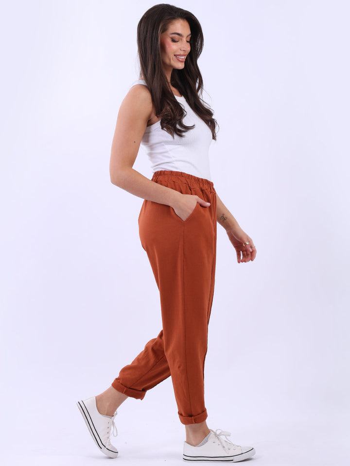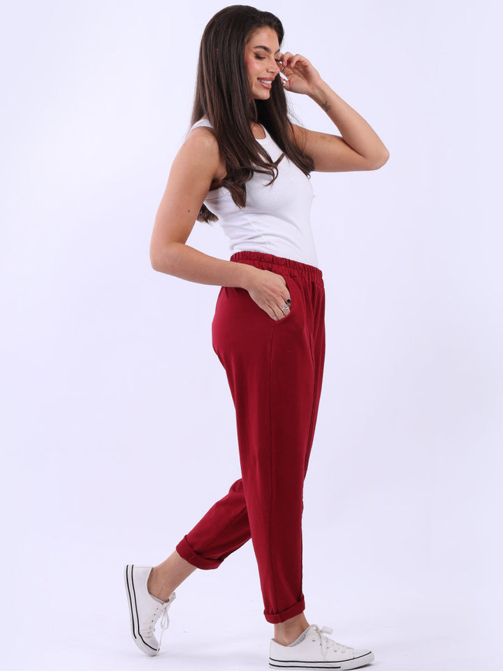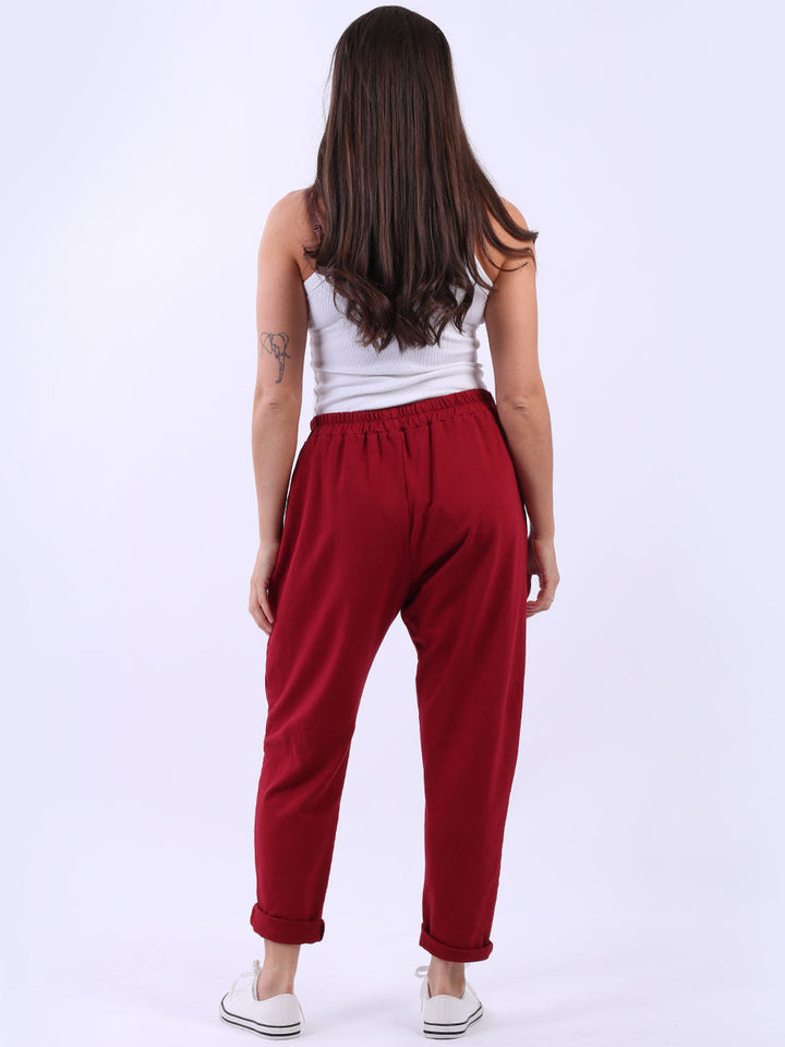 Ladies Solid Cotton Casual Sweat Trousers