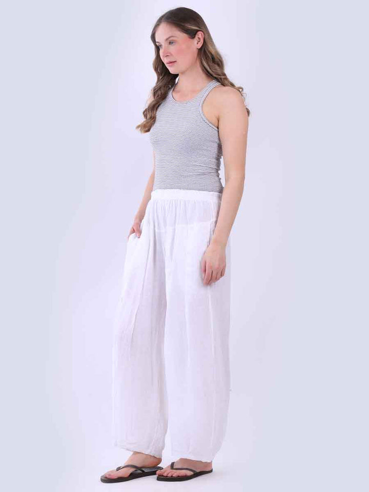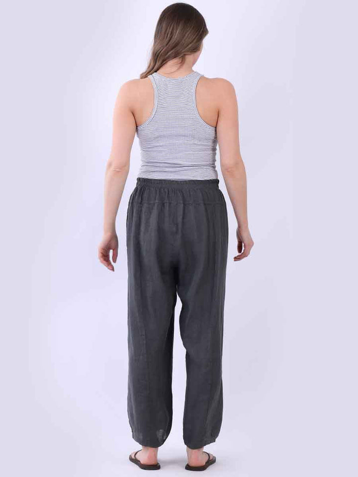 Italian linen breathes life into these relaxed wide-leg trousers, perfect for warm-weather walks. Lightweight with a dreamy, relaxed fit, they sway with every step. They pair perfectly with tank tops and minimal sandals.