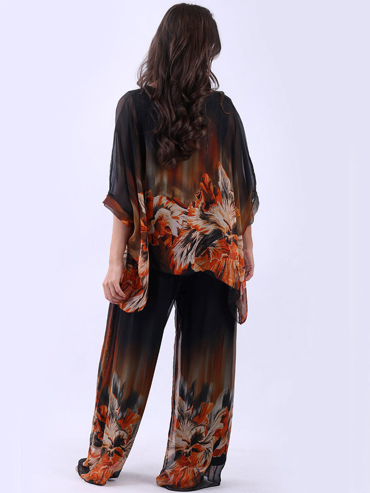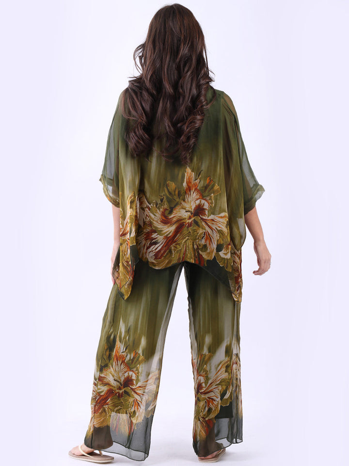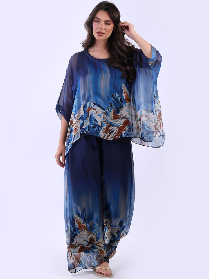 Made In Italy Floral Print Batwing Silk Top