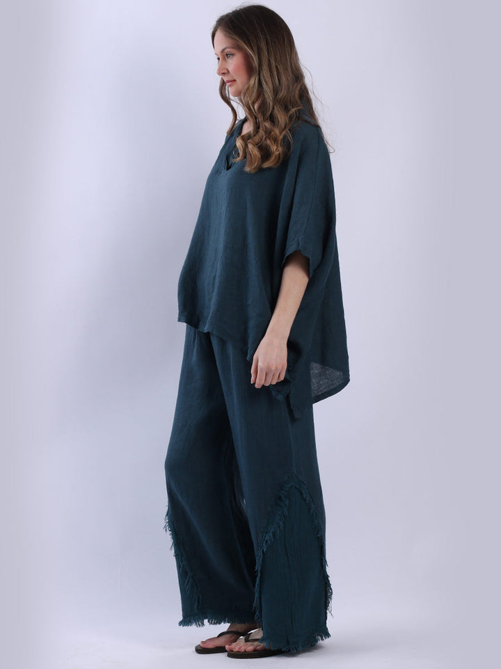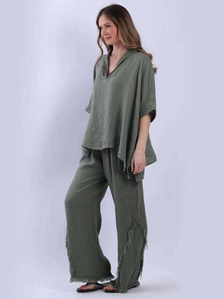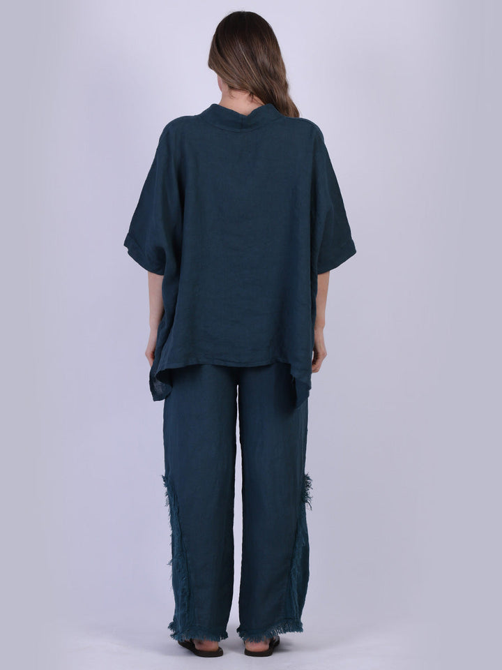 Just simplicity with a flawless drape. This loose-fit linen top is about balance—light, structured, relaxed, and refined. Its soft texture and flowing shape make it a wardrobe essential for those who appreciate effortless styling. Now a must-have item included in the Purplewholesale summer collection.