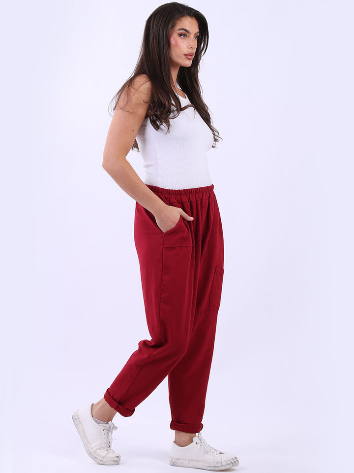 Women looking for comfort and style this winter will love these bold cotton sweat trousers in a solid hue. The relaxed fit, elastic waist, rolled-up hem, and multiple pockets keep things practical and bring a touch of fun. Pair them with a knitted crop jumper and sneakers for a casual, easygoing look that’s great for any day. These trousers are perfect for adding a pop of color to a winter wardrobe.