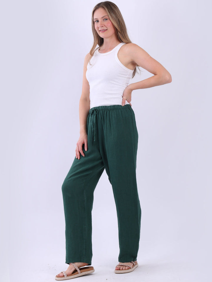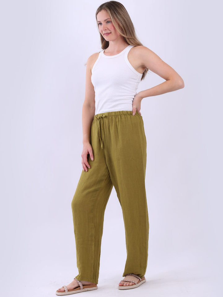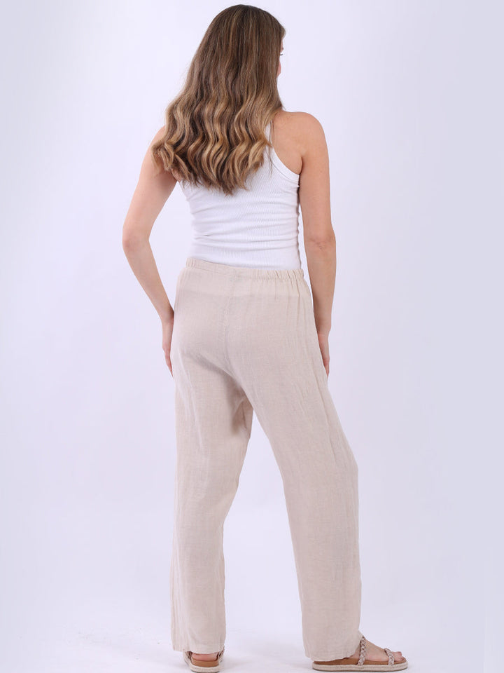 This plain linen pant from Purple Wholesale Texas is all about laid-back sophistication. Made in Italy, it features an elastic waist with a drawstring waistbelt for ultimate comfort, and the wide-leg design adds a modern touch. Pair it with the matching hi-low hem dress for a simple yet elegant look.