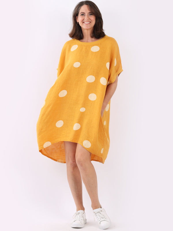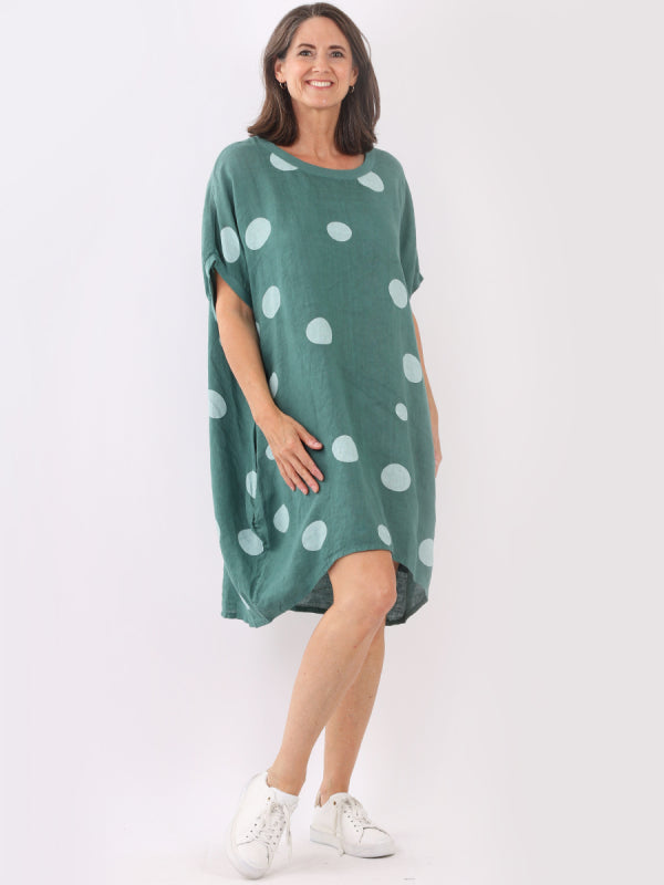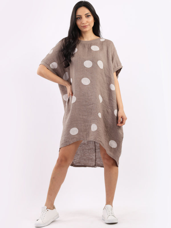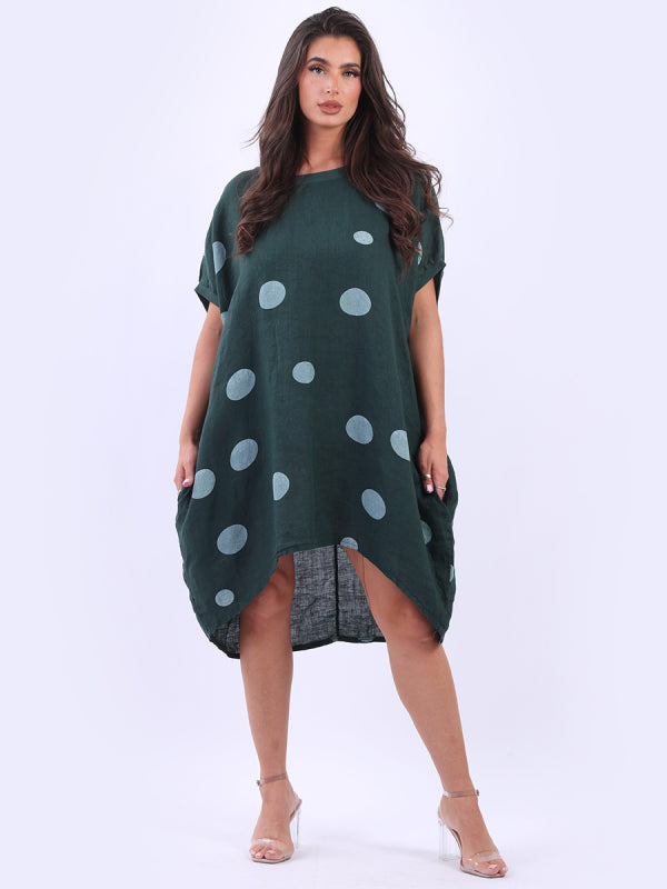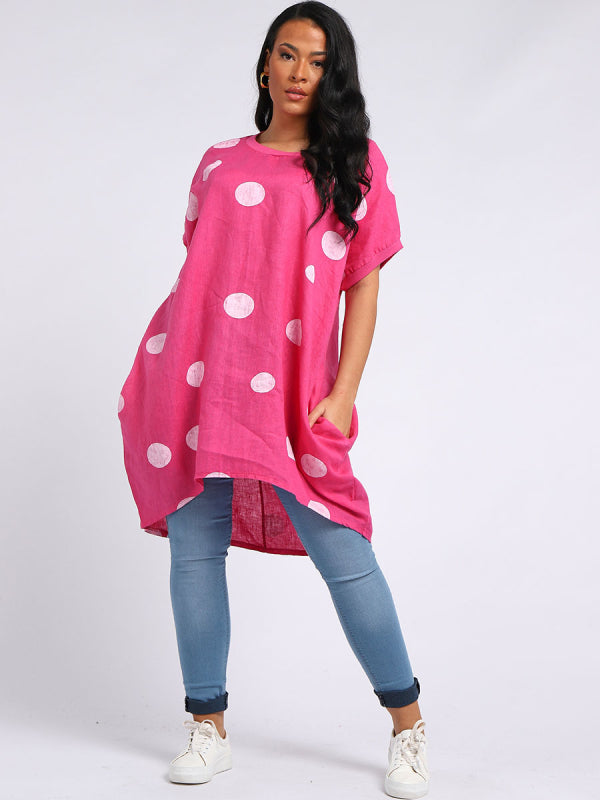 Made In Italy Side Pockets Polka Dot Ladies Linen Top
