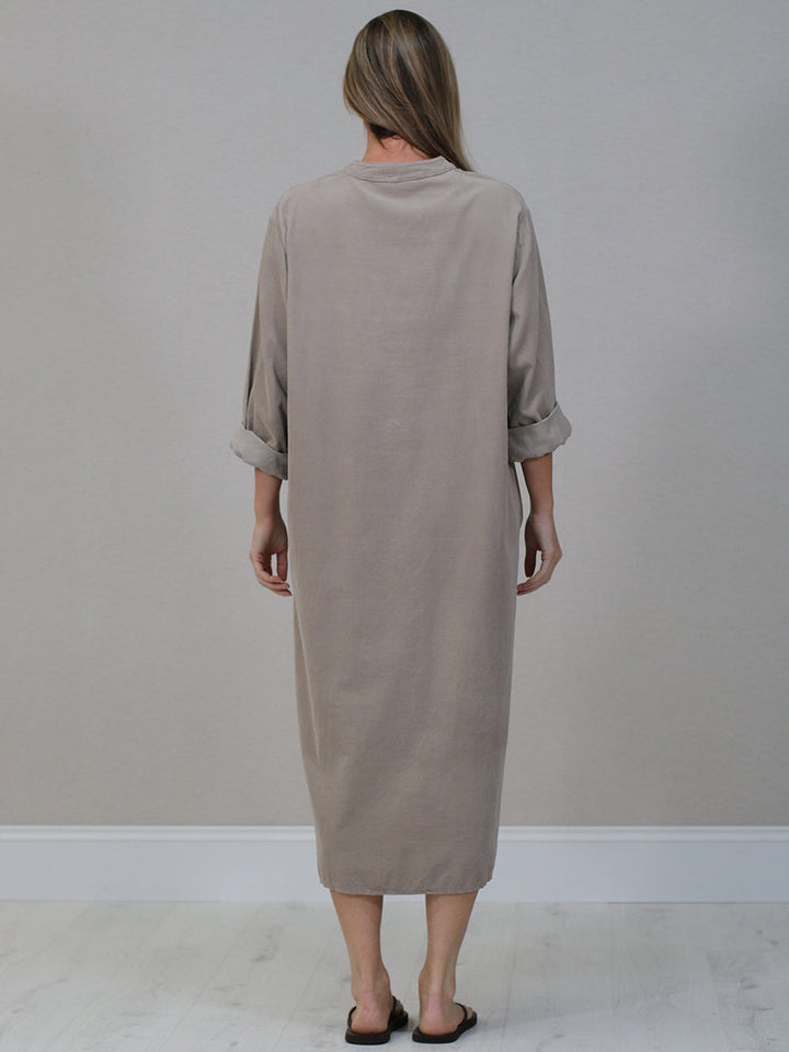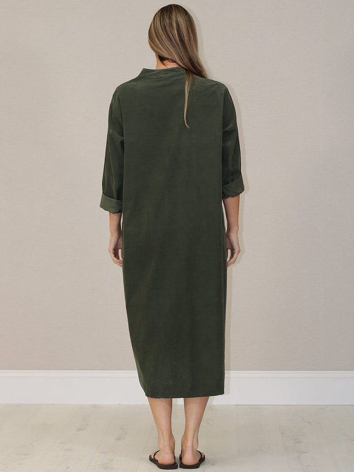 Made In Italy Solid Corduroy Oversized Shirt Dress