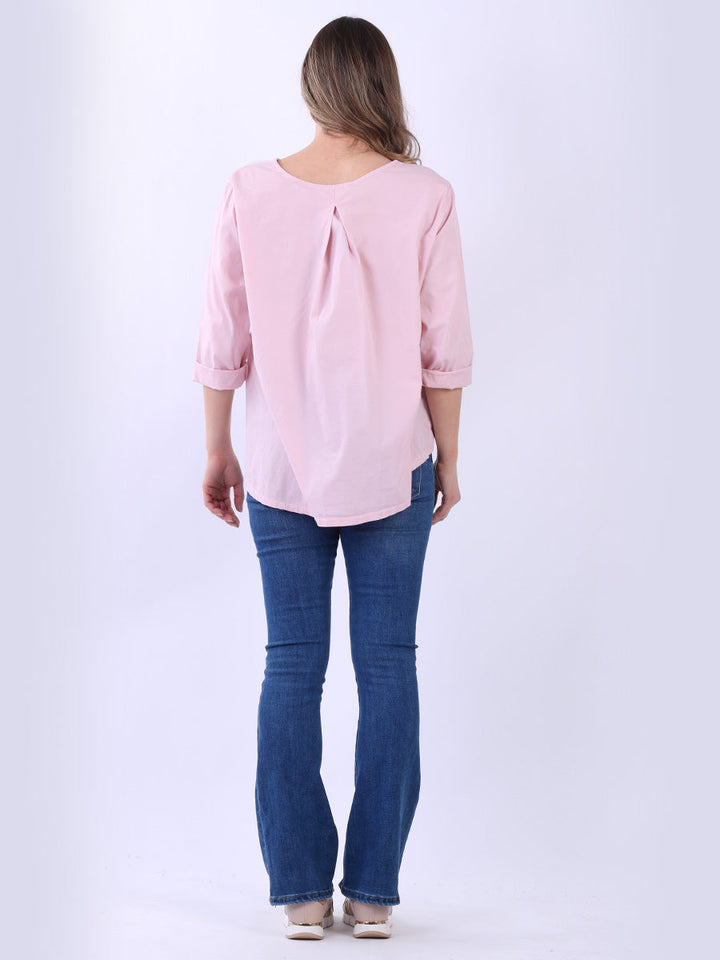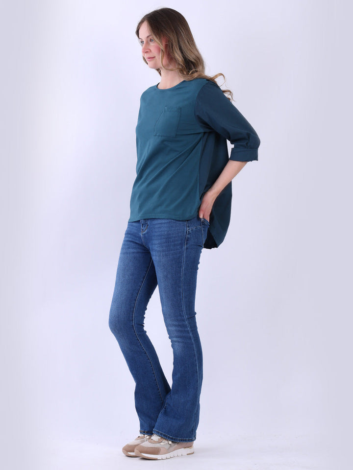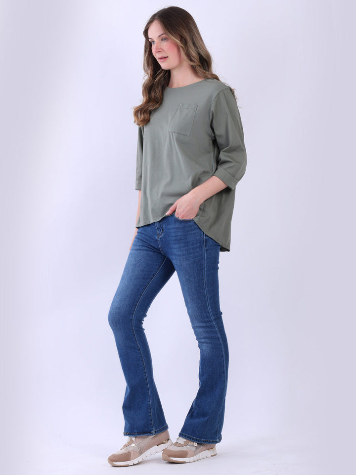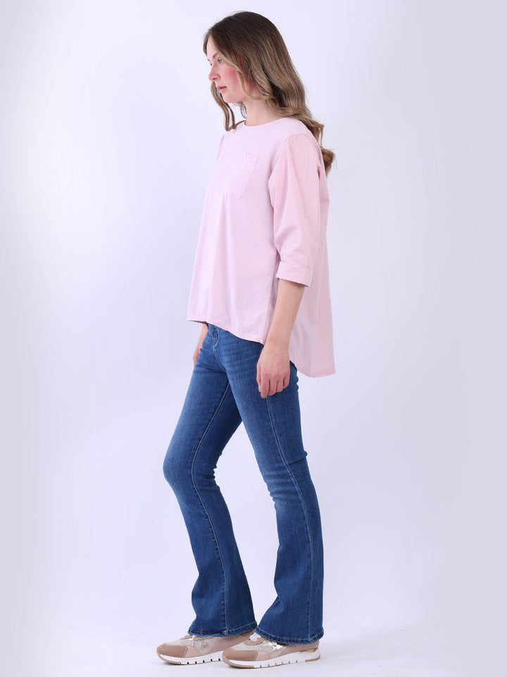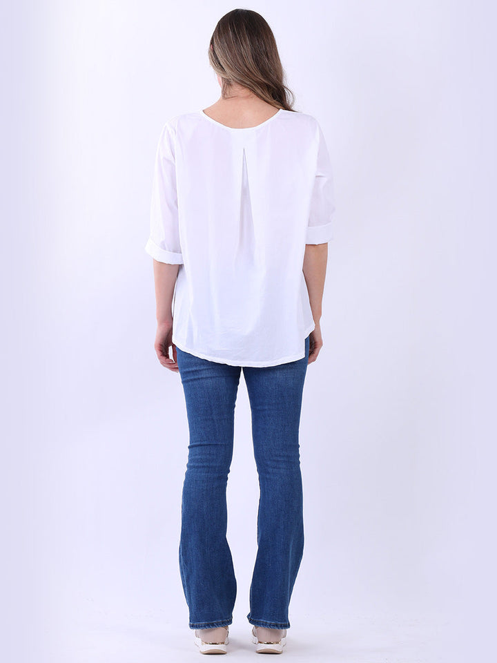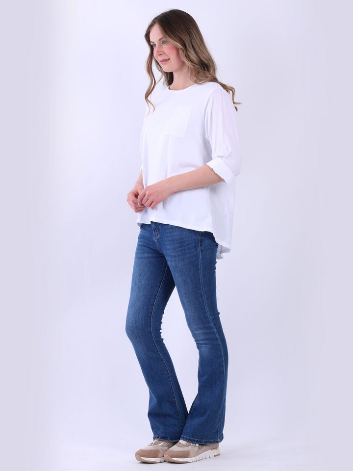Presenting this plain top with basic yet essential features, including a bay neck, front functional pocket, rolled-up sleeves, and a dipped hem, Purple Wholesale fashion boutique USA gives women's summer wardrobes a fresh and effortlessly stylish addition. Made in Italy, this T-shirt is crafted from high-quality cotton with a relaxed lagenlook fit. Dress it with wide-leg trousers or denim for a boho finish.