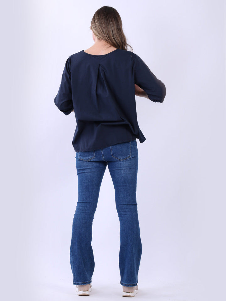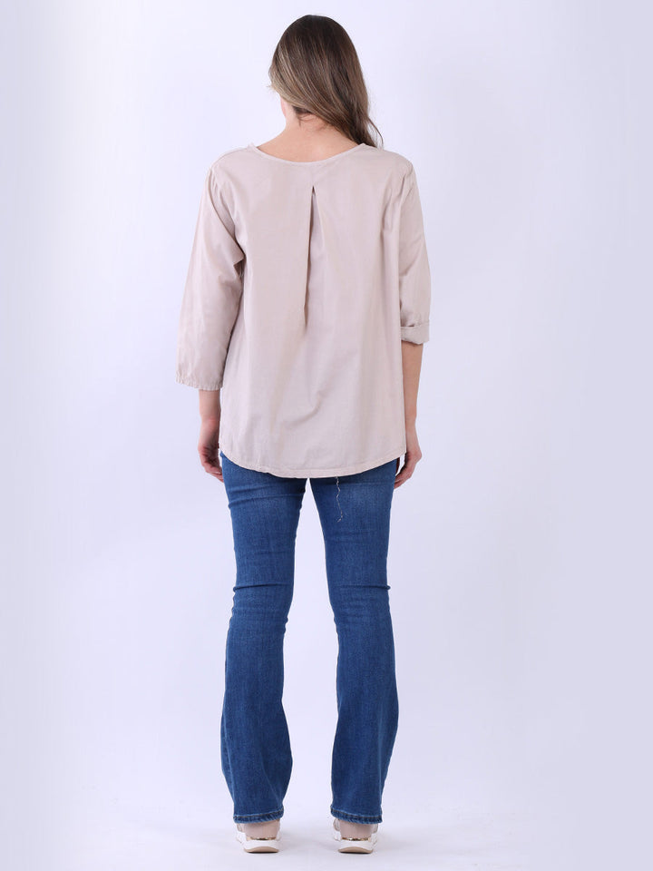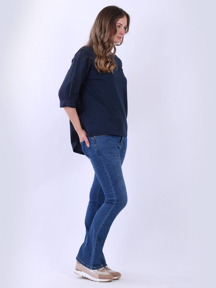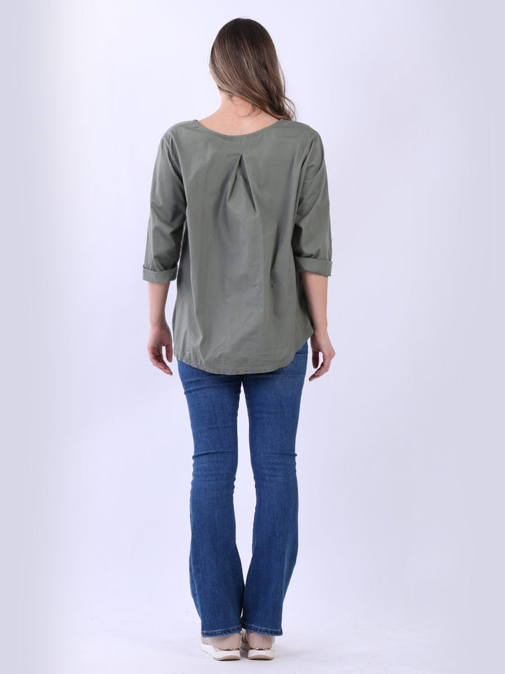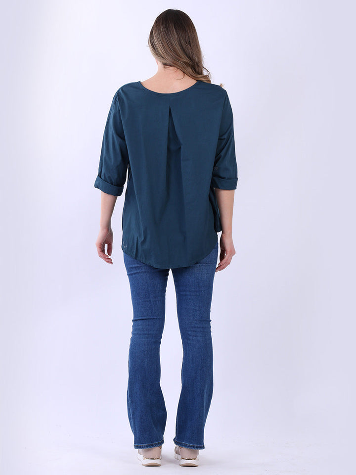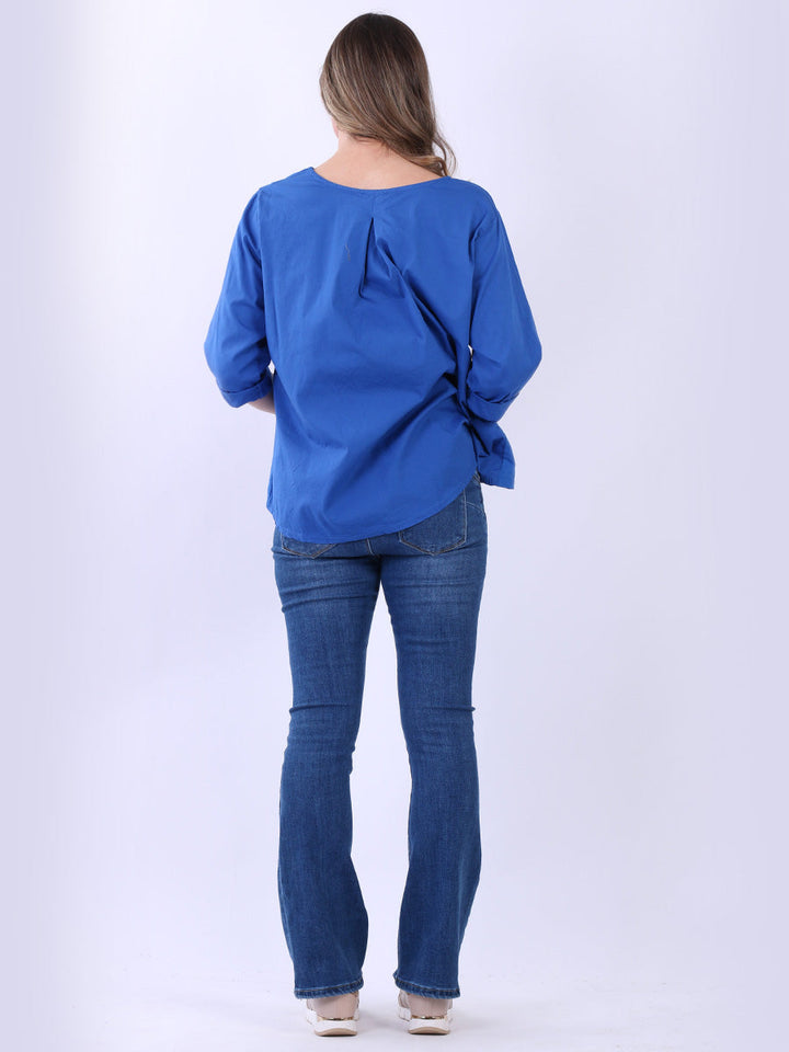 Presenting this plain top with basic yet essential features, including a bay neck, front functional pocket, rolled-up sleeves, and a dipped hem, Purple Wholesale fashion boutique USA gives women's summer wardrobes a fresh and effortlessly stylish addition. Made in Italy, this T-shirt is crafted from high-quality cotton with a relaxed lagenlook fit. Dress it with wide-leg trousers or denim for a boho finish.