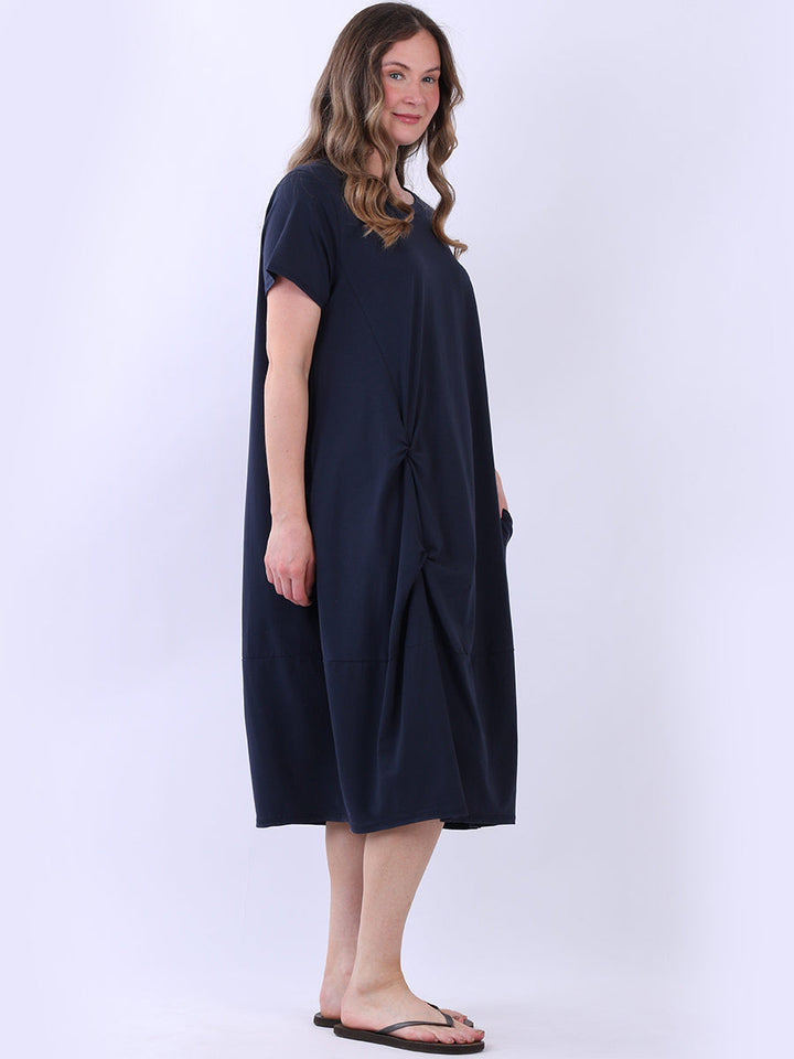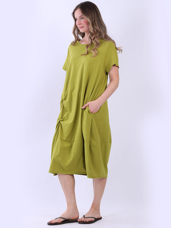 Soft, breathable cotton shapes this solid dress, crafted for plus-size women who love a laid-back, casual style. The delicate ruched detail adds a gentle touch, perfect for summer days. Lightweight and airy, it is designed to move with laughter and sunshine.