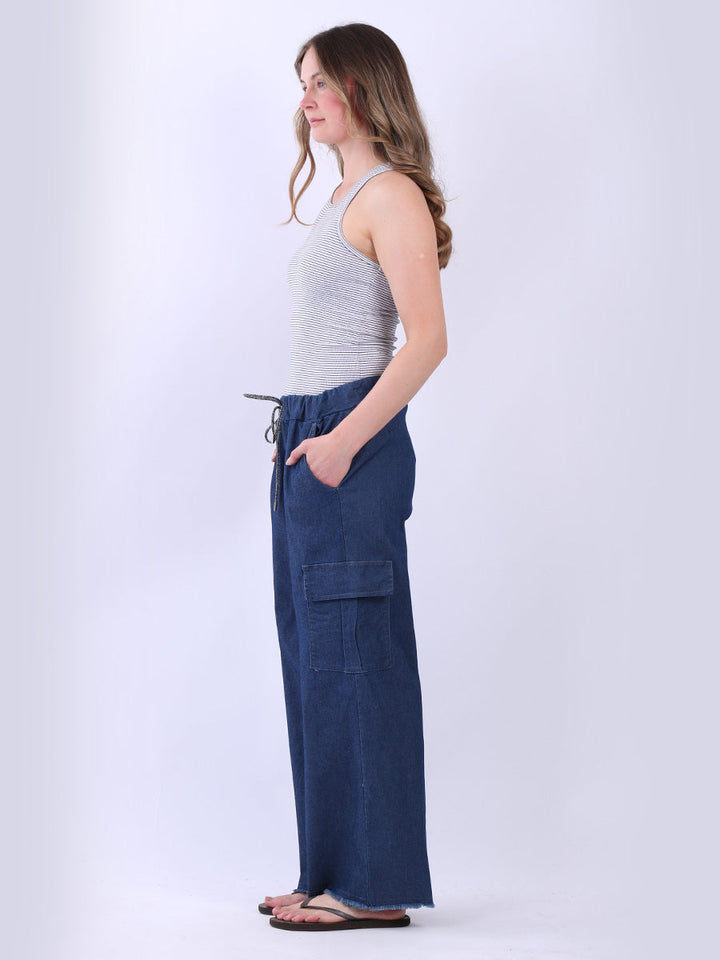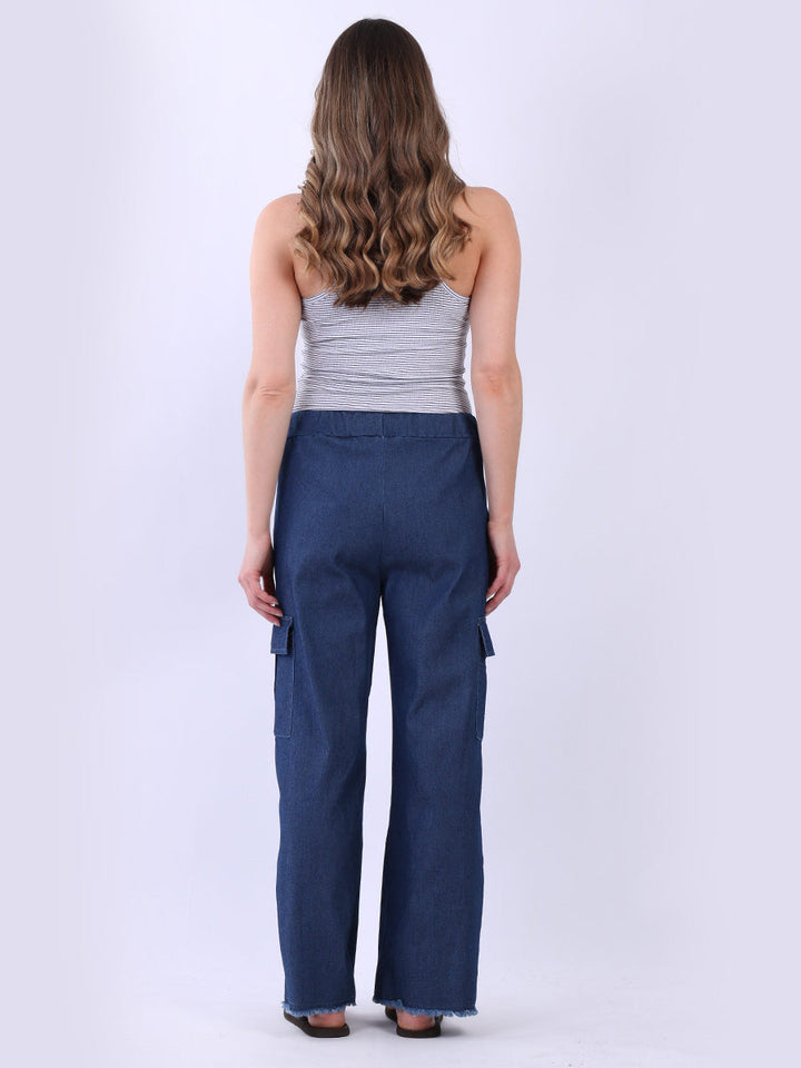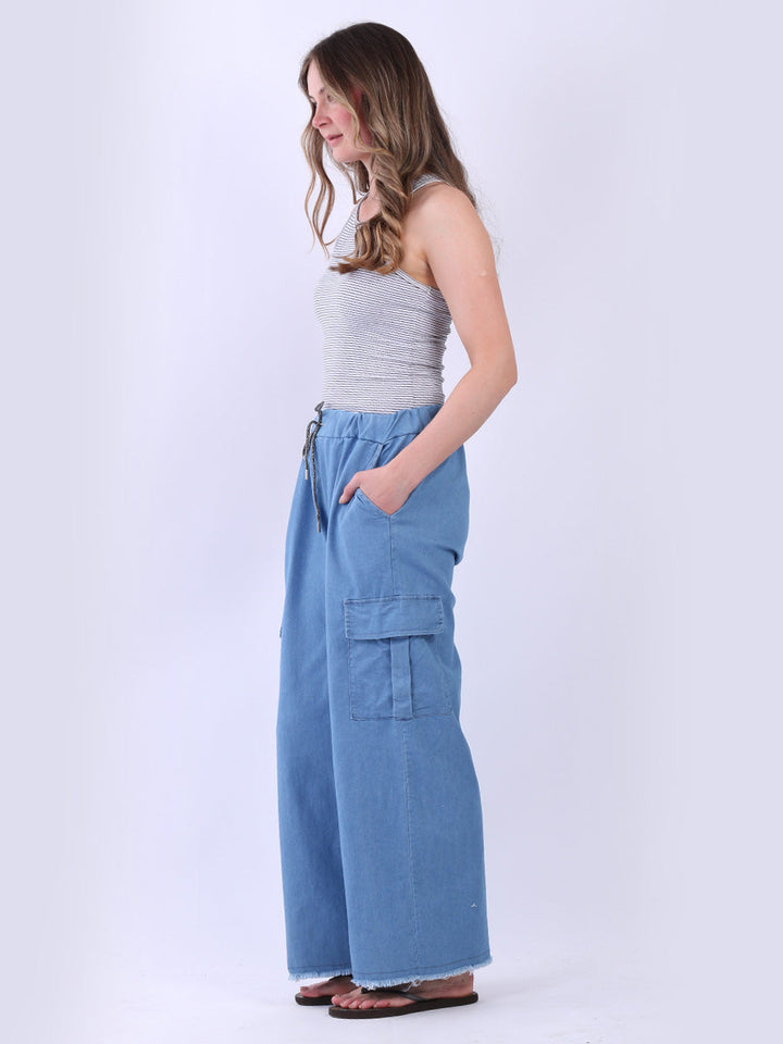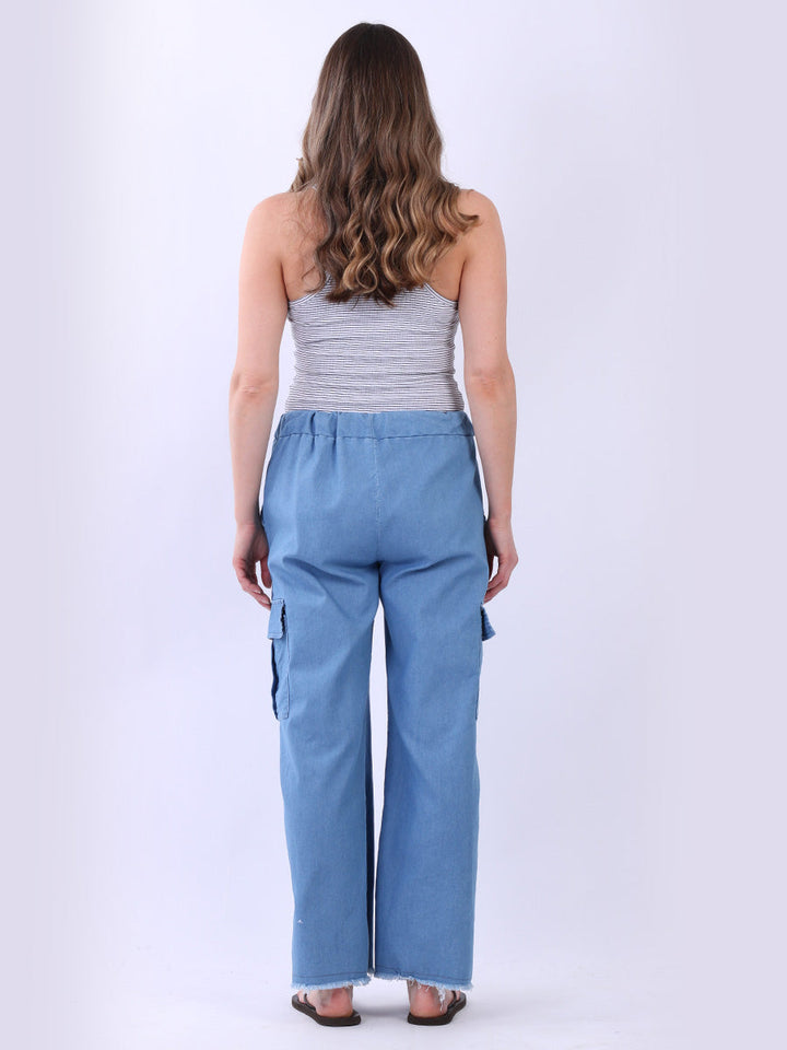 Lightweight denim cargo pants bring easy comfort to warm days. Made in Italy from soft cotton, they carry an oversized, laid-back fit. Match them with basic tops and trainers for an effortless, casual style.