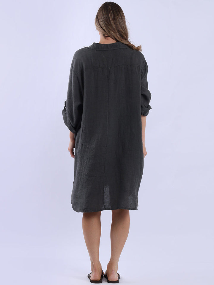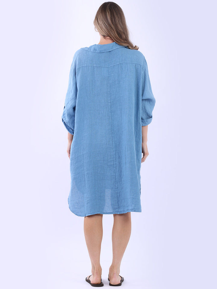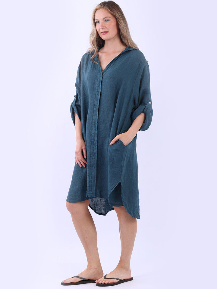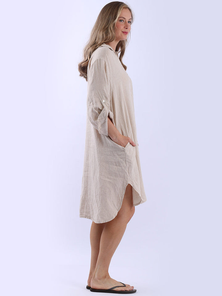 Purplewholesale USA has designed this made in Italy linen dress with comfort and style in mind. Featuring a classic collared neck, tabbed sleeves, and its shirt style gives a bold touch to feminine look of women wearers. Pairing up with sneakers this shirt dress is a great choice for plus size women.