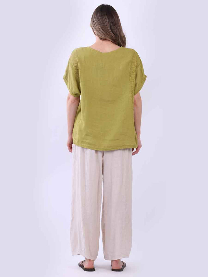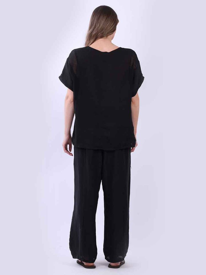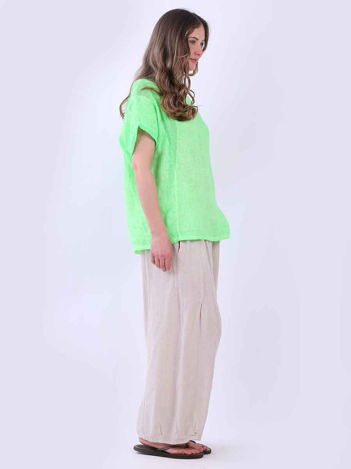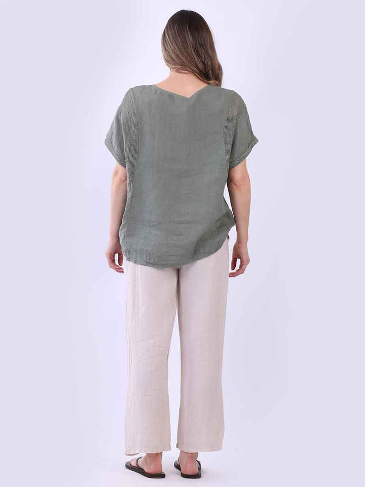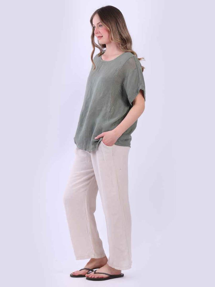 Plain Short Sleeves Mesh Net Linen Top
