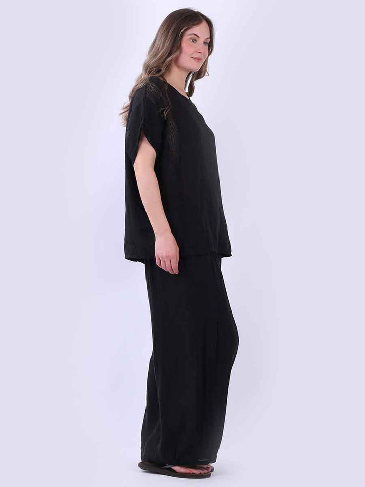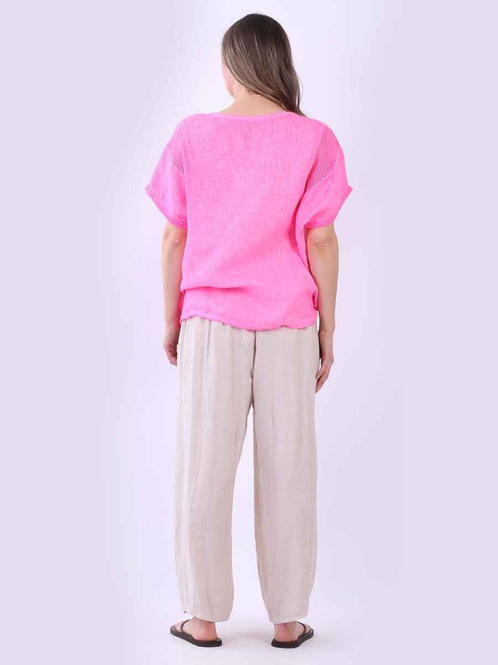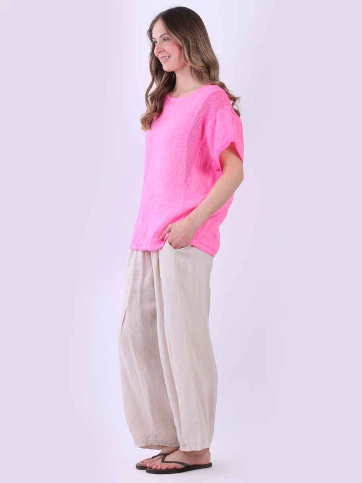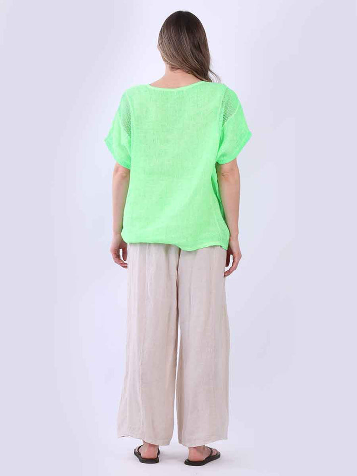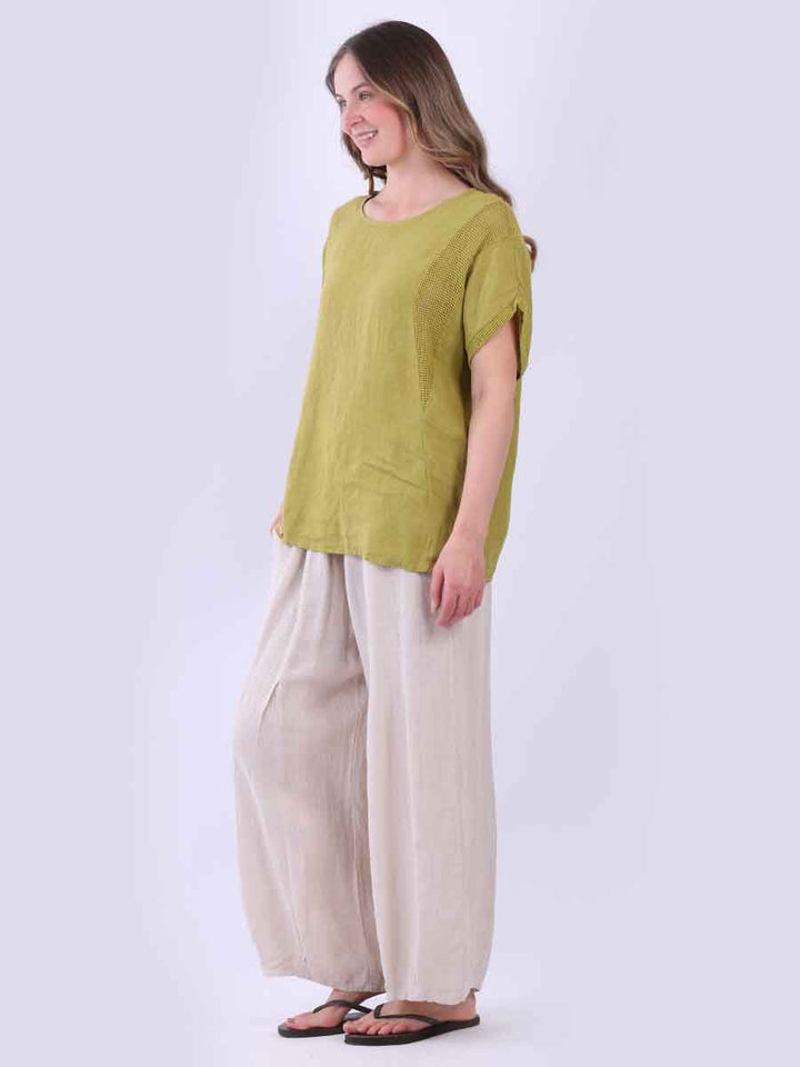 Plain Short Sleeves Mesh Net Linen Top