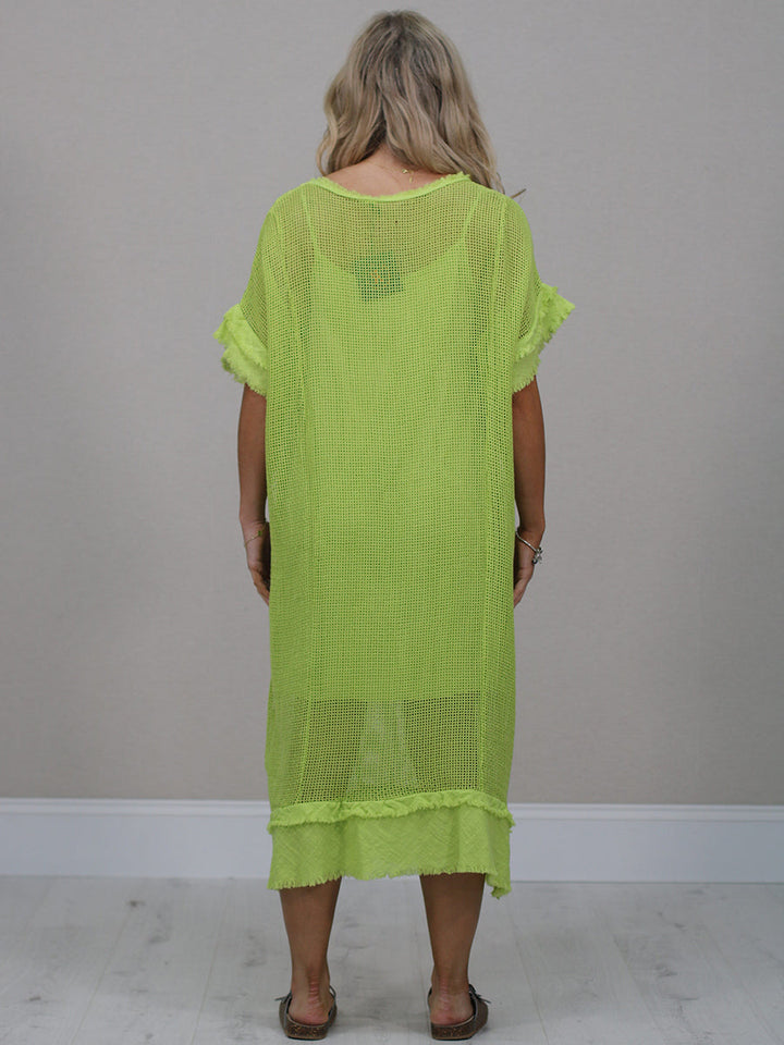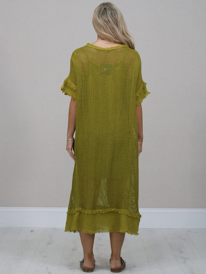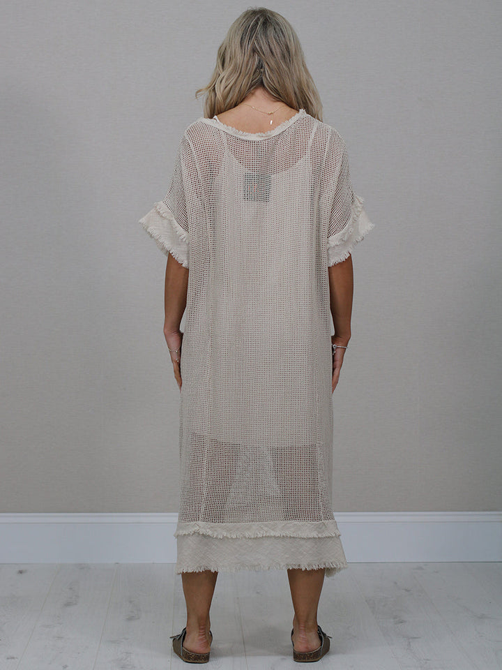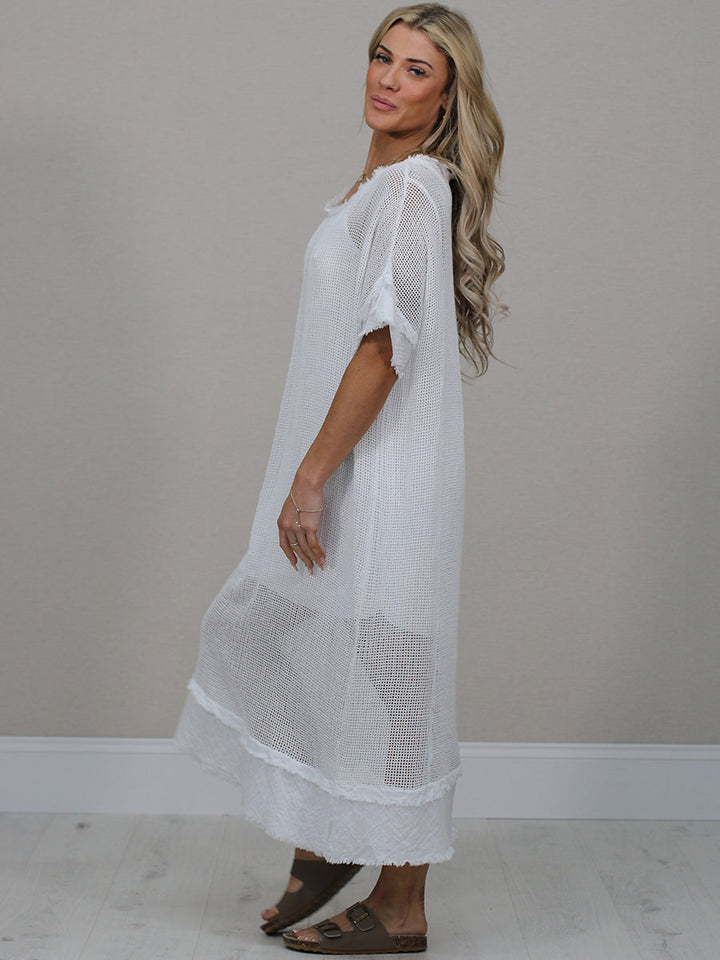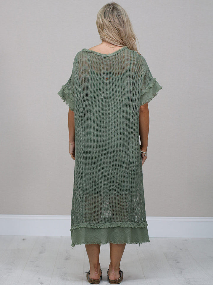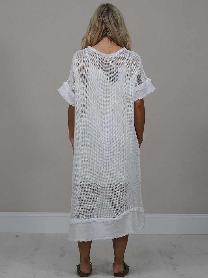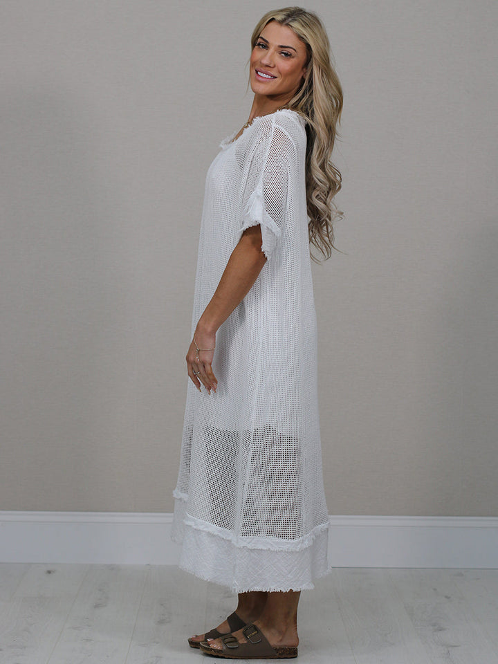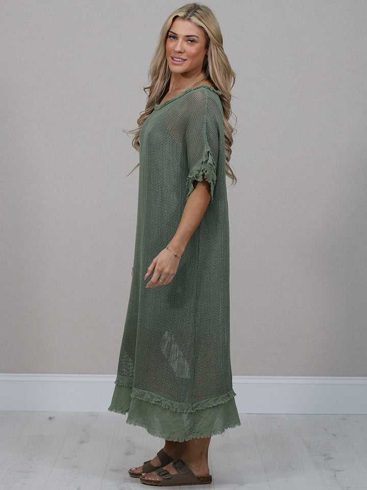 Raw Edges Solid Cotton Net Midi Dress