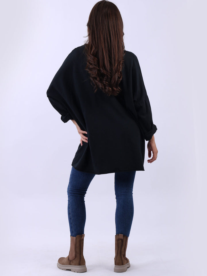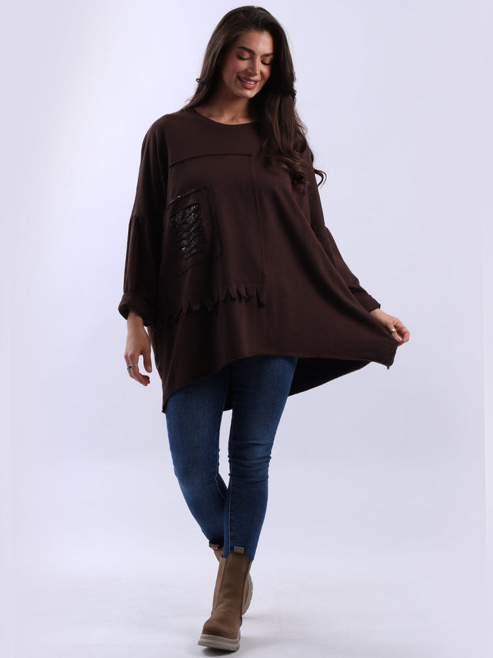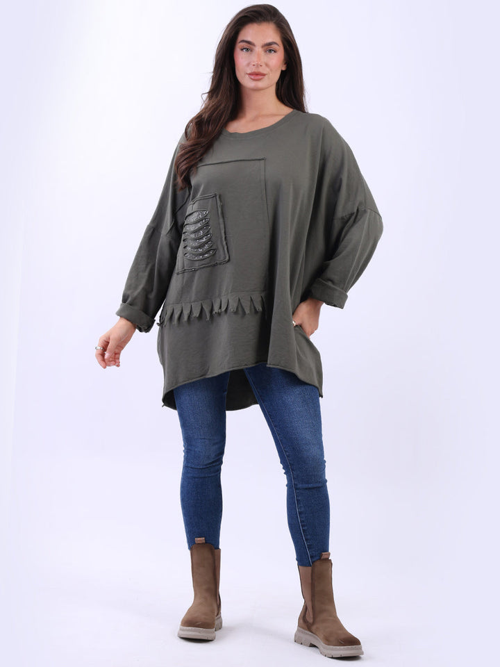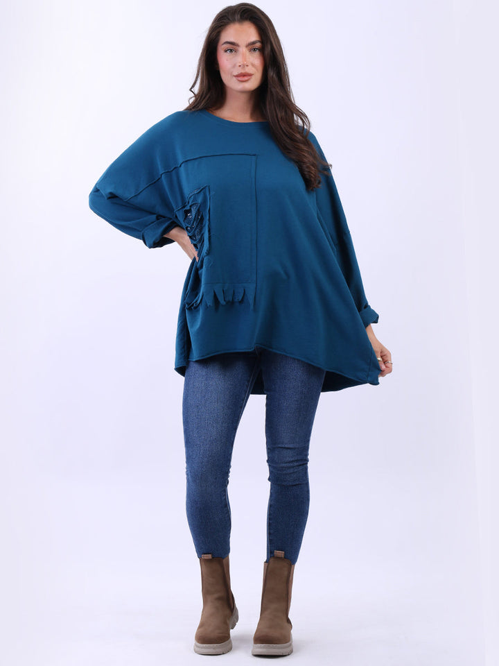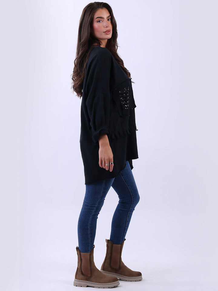 Sequin Ripped Batwing Cotton Oversized T-Shirt
