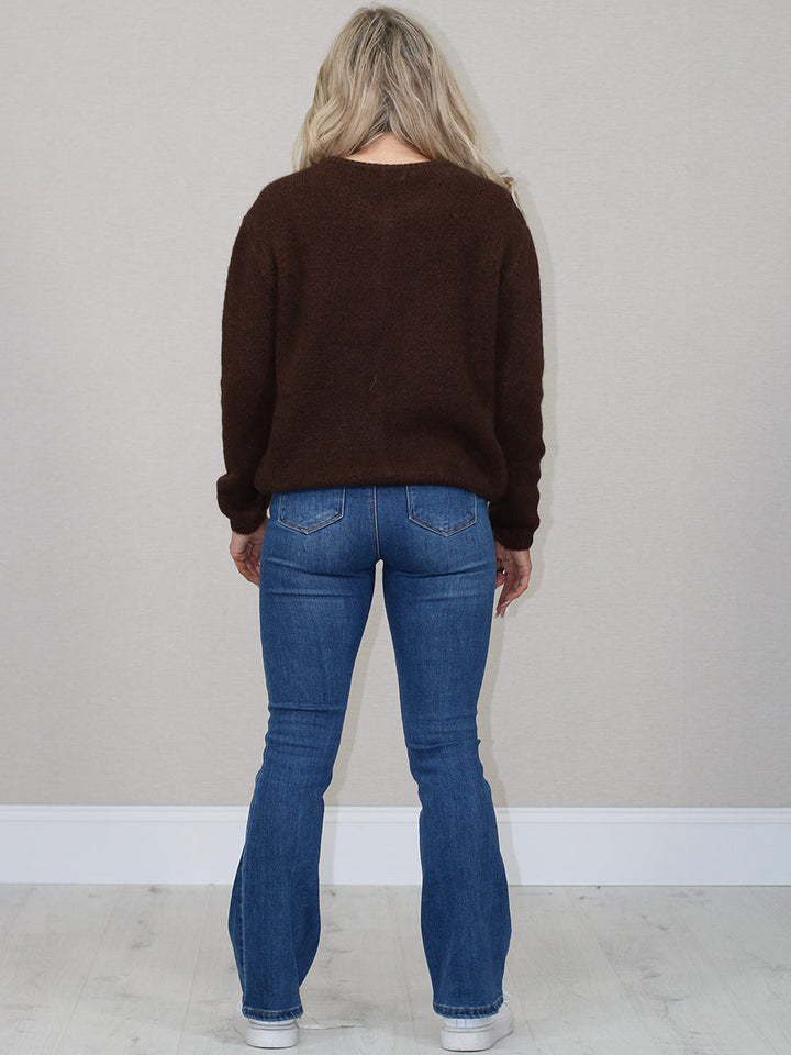 An ideal choice for effortless layering, this knitted cardigan is sure to become a favourite among women wearers. Made in Italy, it features a simple yet elegant design with a round neckline, front button fastening, and long sleeves. Pair it with wide-leg jeans and sneakers for a boho-inspired look, or layer it with matching trousers and a coordinating top.