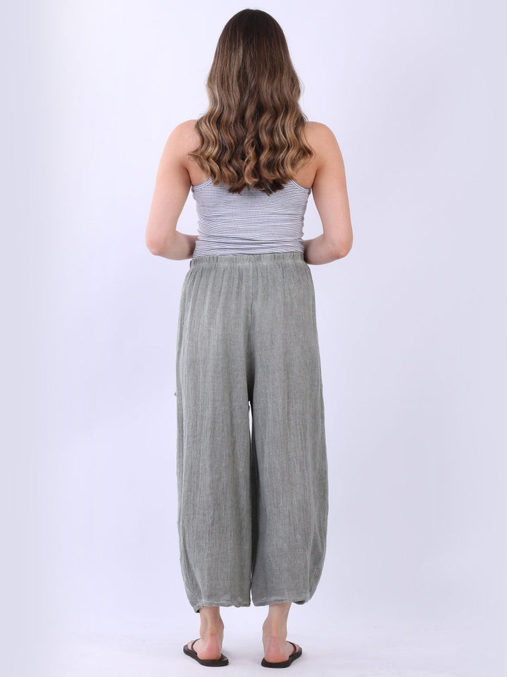 Vintage-washed linen trousers whisper stories of slow, effortless days. Oversized with a laid-back fit, these are made for plus-size women who love comfort with soul. Pair them with oversized shirts and worn sneakers.